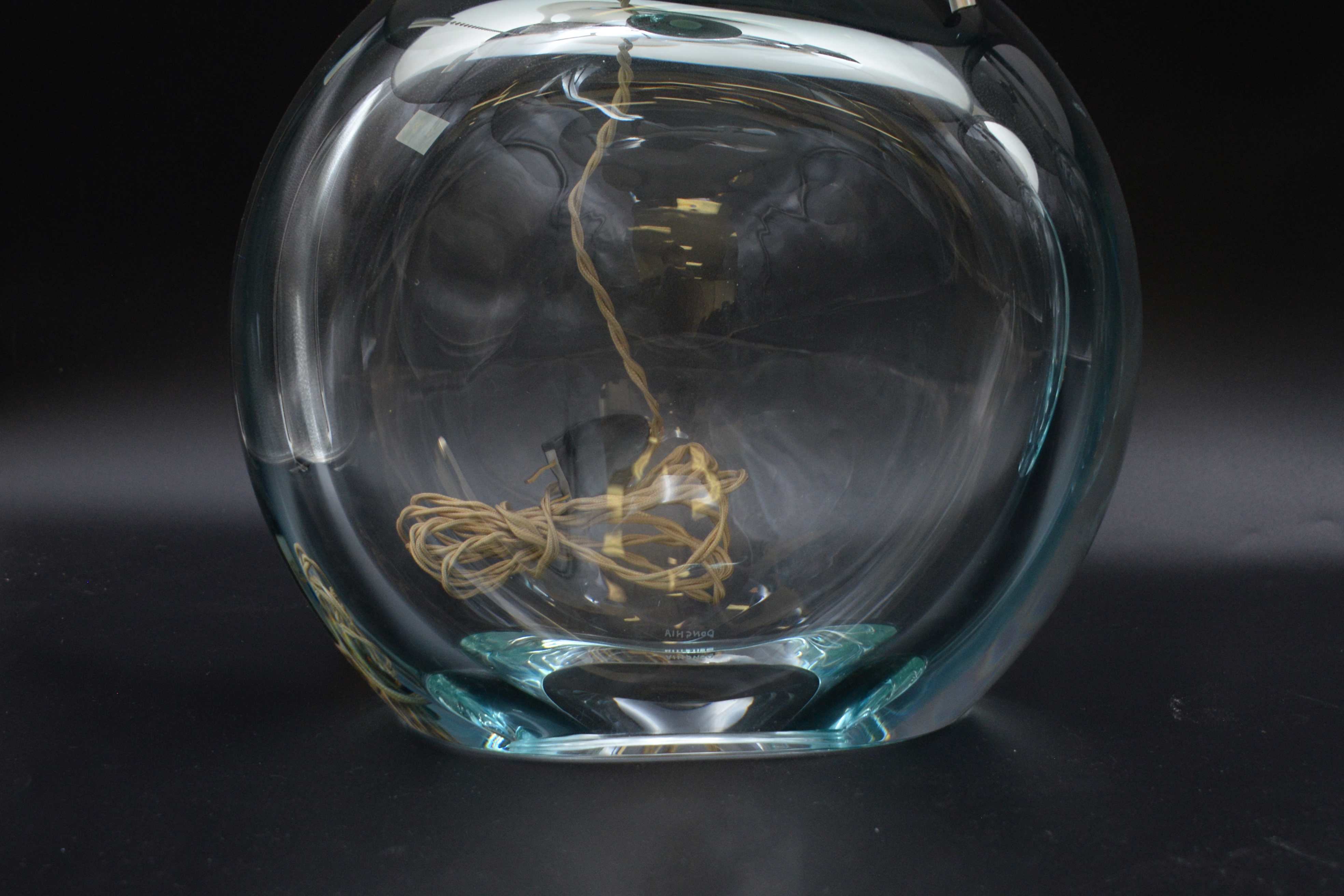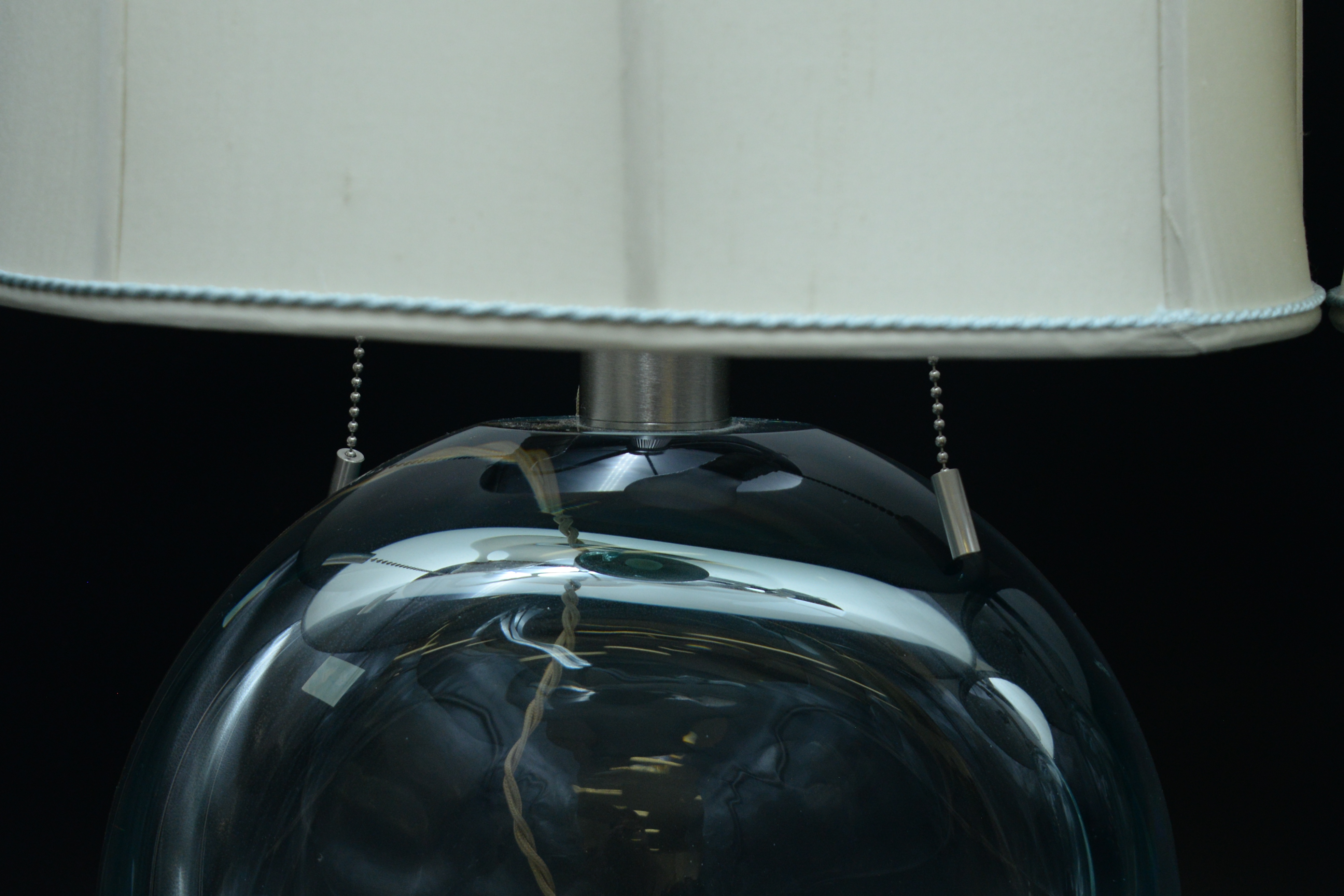 Pair of Doug Gorfinkle, Donghia Ovoid Glass Lamps and Shades, signed on base “Donghia”, height 22 inches