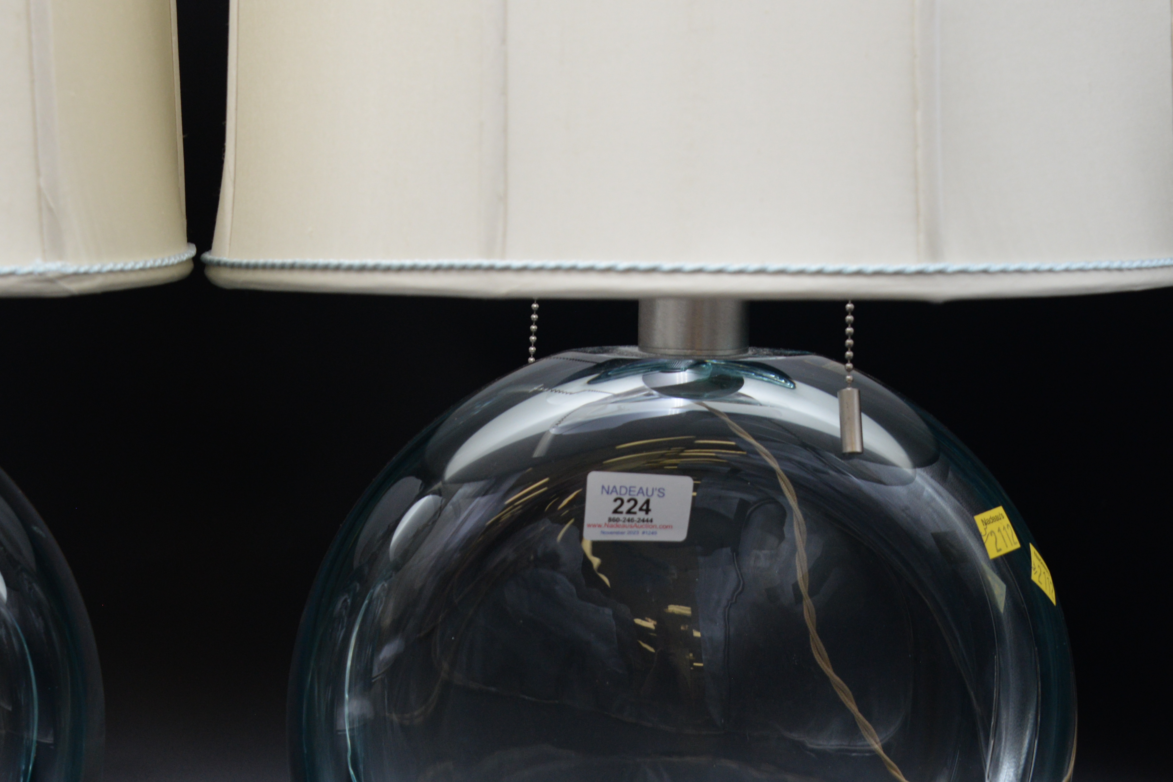 Lot 224: Pair of Doug Gorfinkle, Donghia Ovoid Glass Lamps and Shades