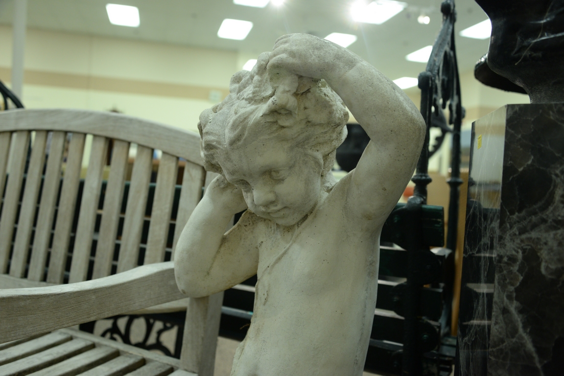 Lot 224: Pair of large cement figures of girls. ht. 40in. Provenance: Collection of Anne Jones Willis and the late John Ralph Willis, New Jersey