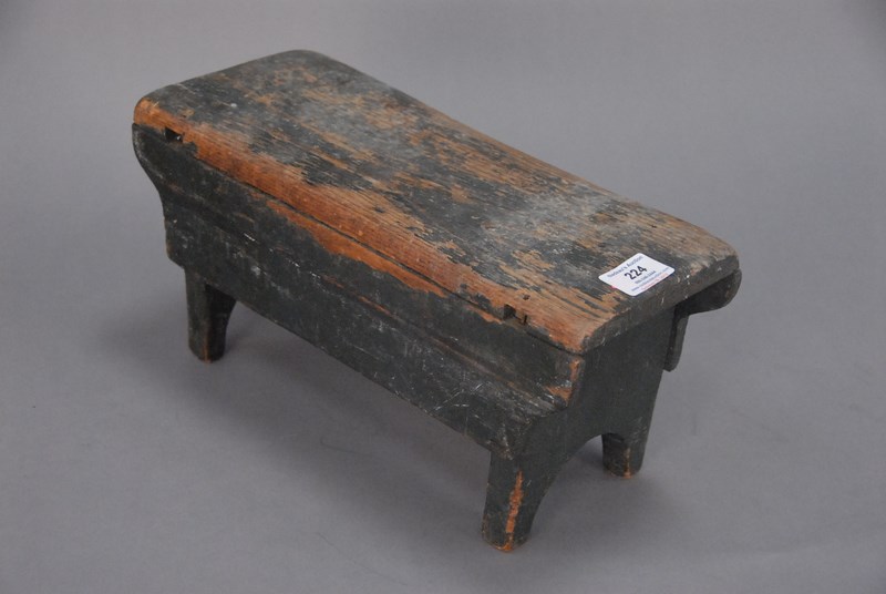 Primitive small stool in original green paint.