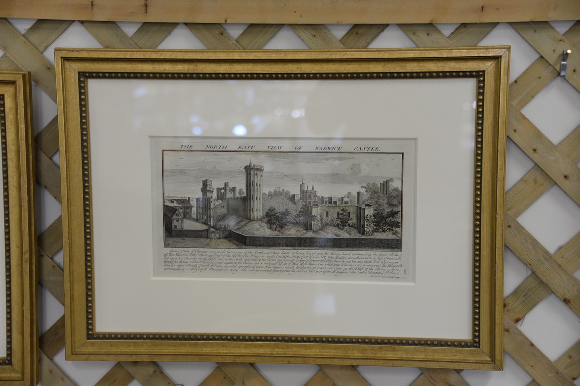 Lot 224: Set of four hand colored engravings by Samuel and Nathaniel Buck 1696-1779 and 1695-1775 including Bodiham Castle, Warwick Castl…