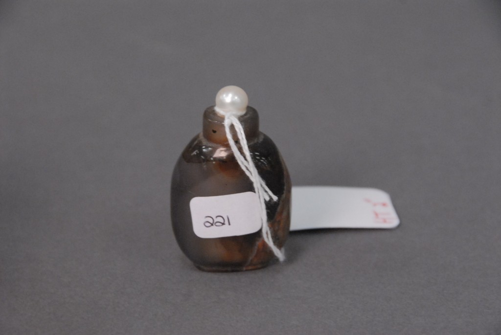 Shadow agate snuff bottle, having pearl top, 19th century, ht 2.