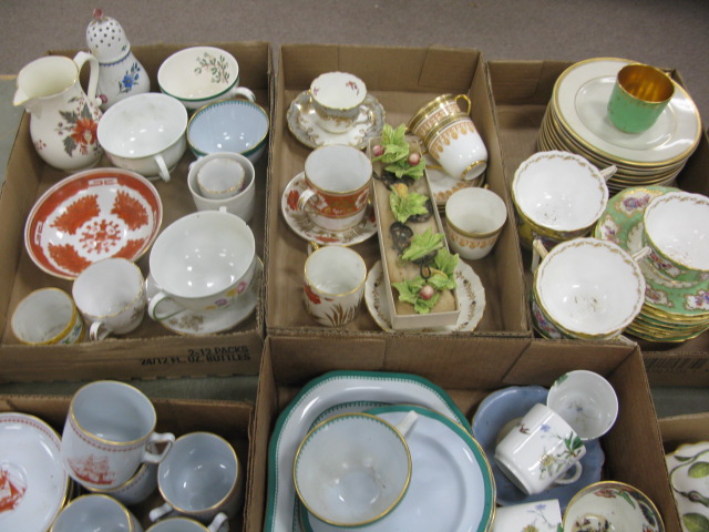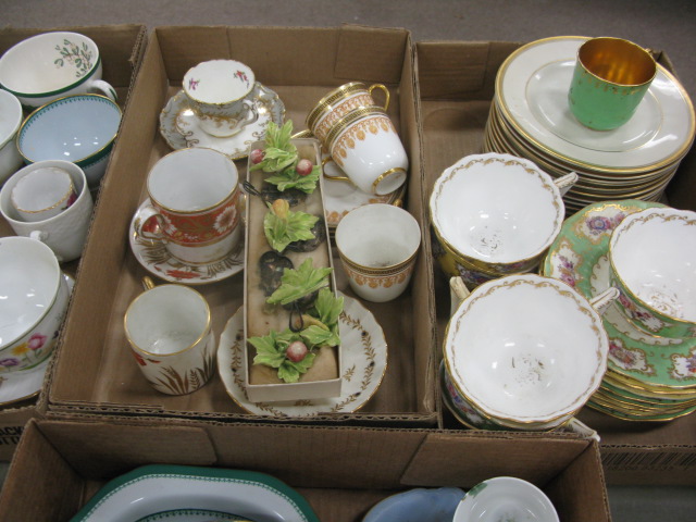 Six box lots of cups and saucers, bowls, partial tea set to include Royal Crown Derby, Spode, Royal Worcester, Limoges etc