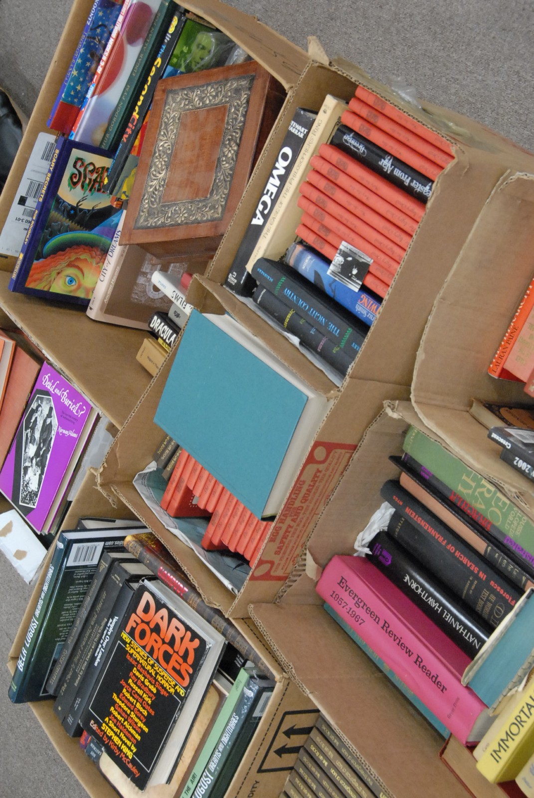 Twenty seven boxes of books such as Immortals of the screen, Dark forces, Ghost chaser chronicles, Dictionary of Spiritualism, Magic books, Dream of Dracula, Horror of the supernatural, etc