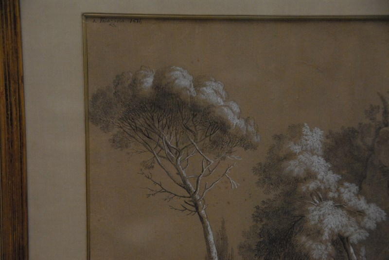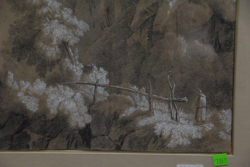 Lot 224: Watercolor pencil white wash on paper unsigned marked Palazzola 1626 top left 13 1/2 x 18 1/2