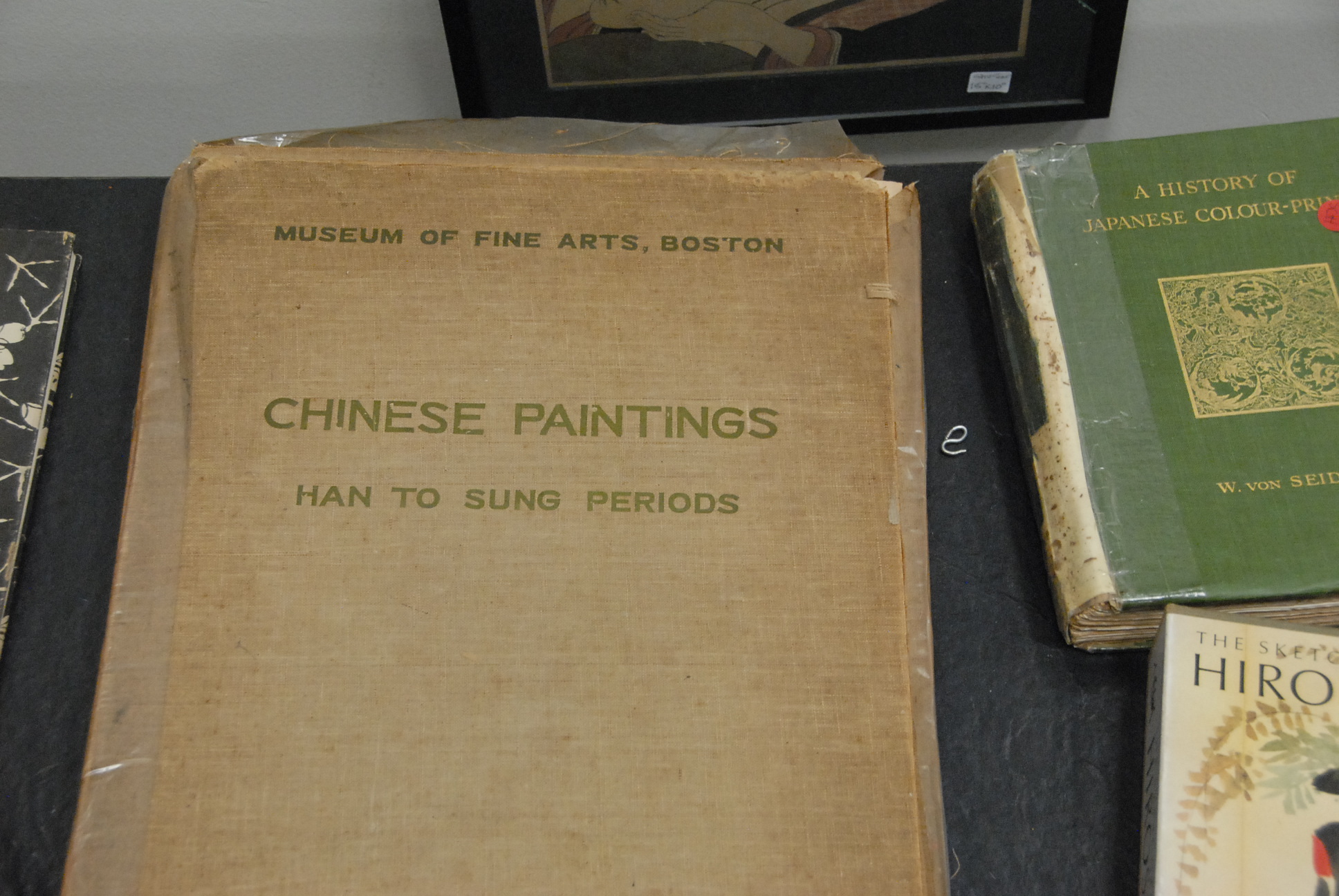 Group of books: Epochs of Chinese and Japanese Art Vol I and II, J. Hillier, Chinese Painting Museum of Fine Arts Boston, and four other books.