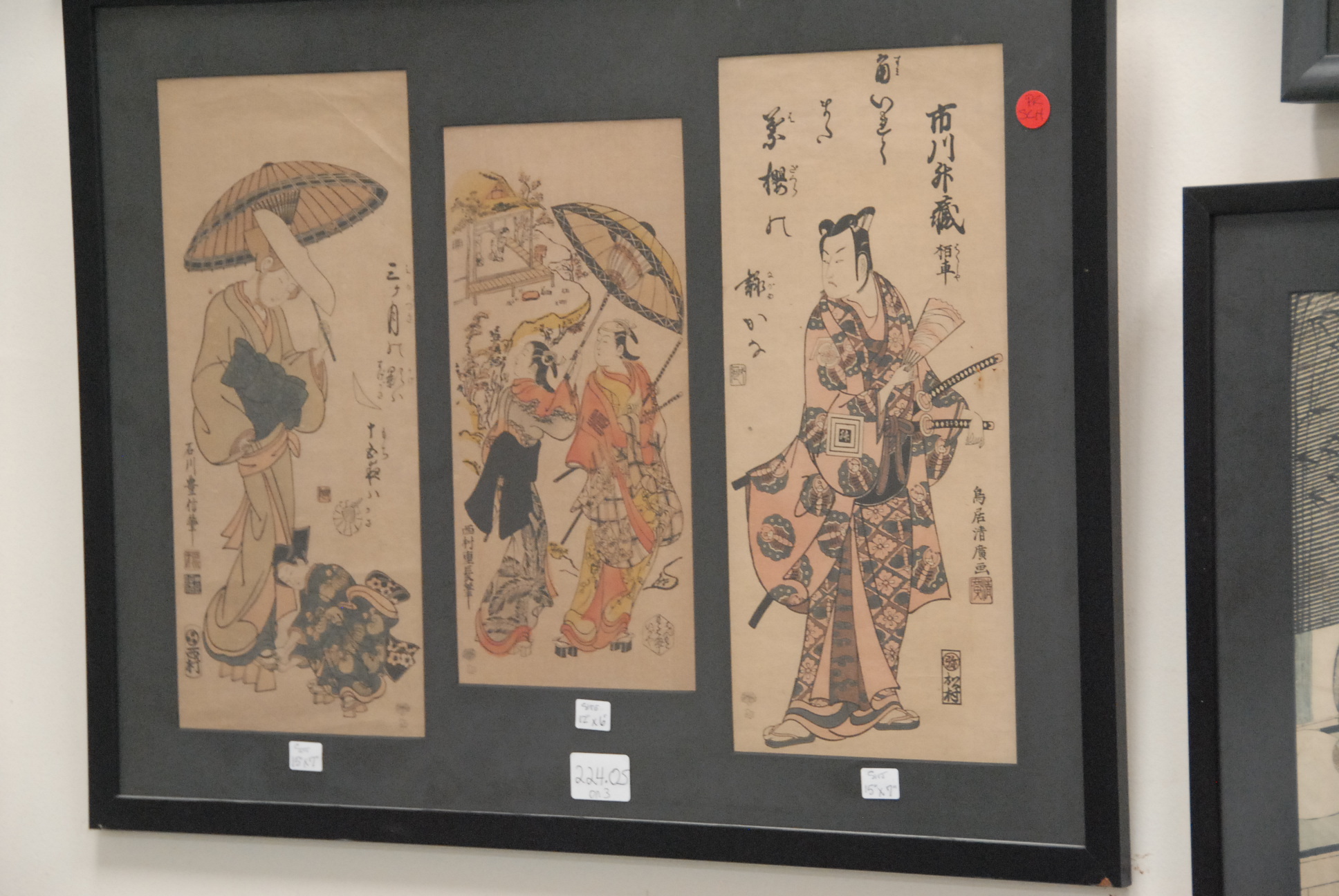 Lot 224e: Three framed Japanese Paintings: Toyonubu 1711