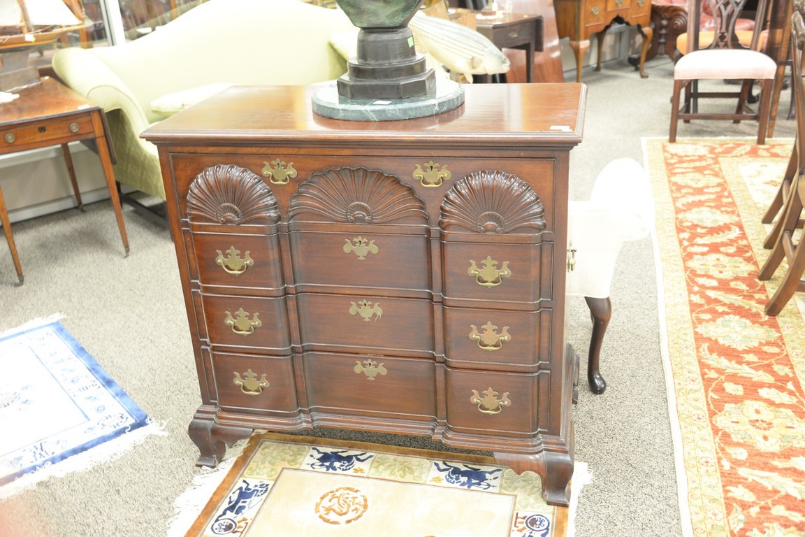Custom mahogany blockfront chest. ht. 38in., wd. 40in., dp. 20.