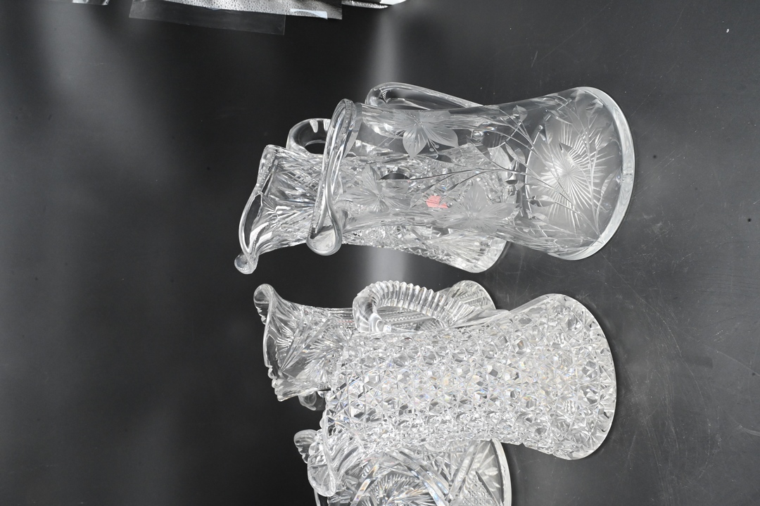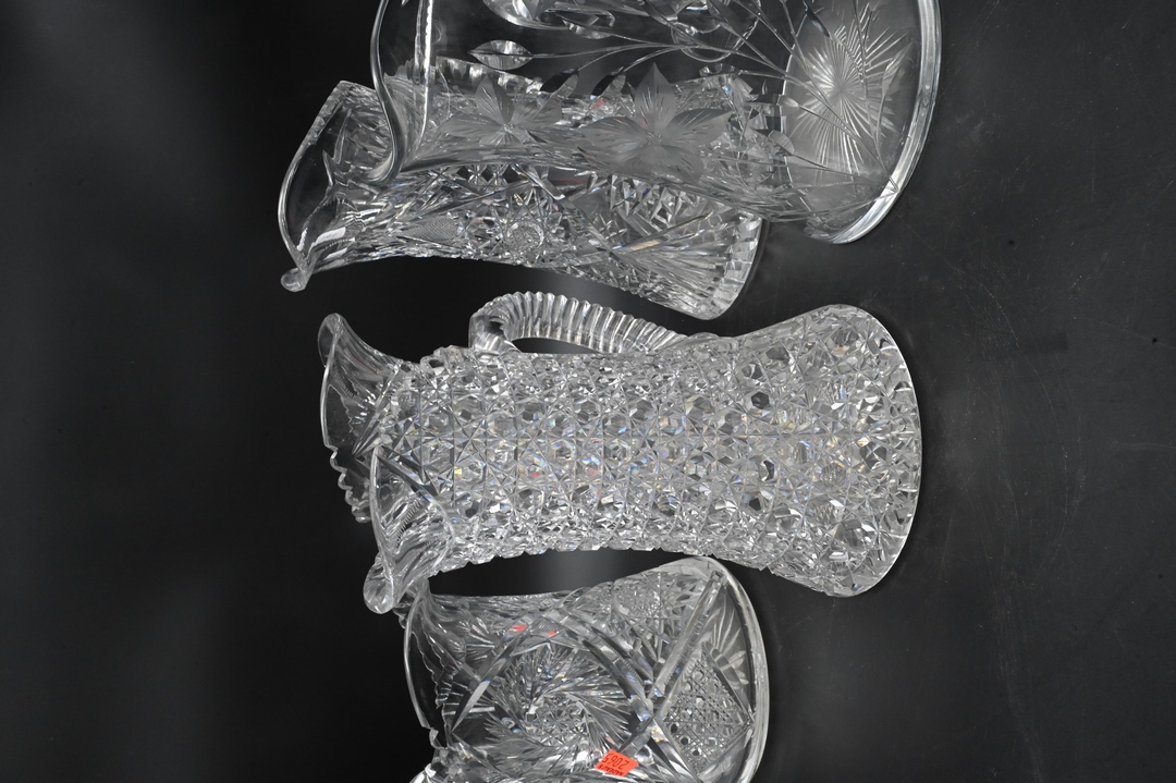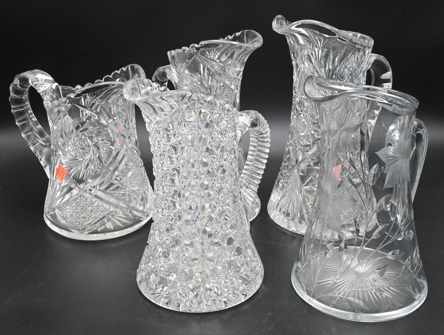 Five American Brilliant Cut Glass Pitchers, tallest 11 inches.