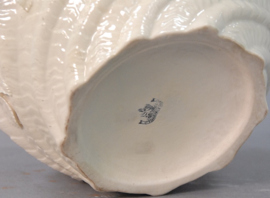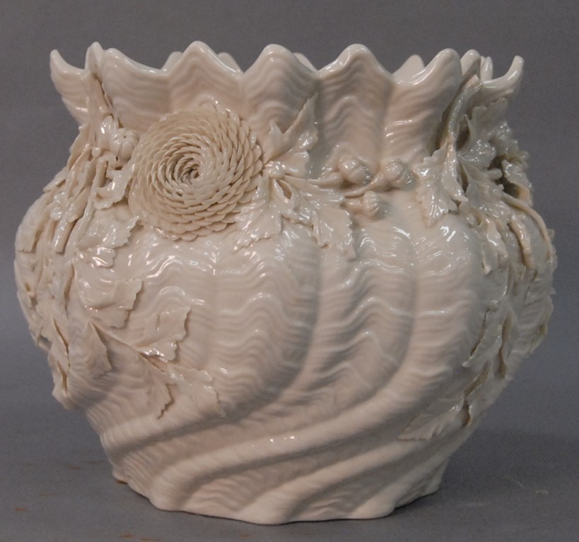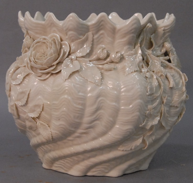 Irish Belleek planter, black mark. height 7 3/4in. diameter 8in.