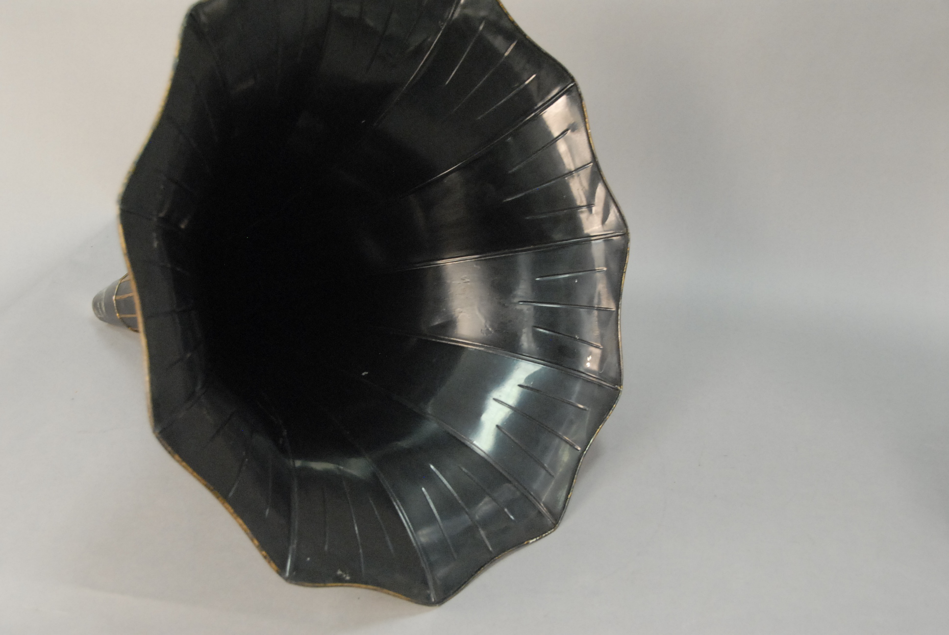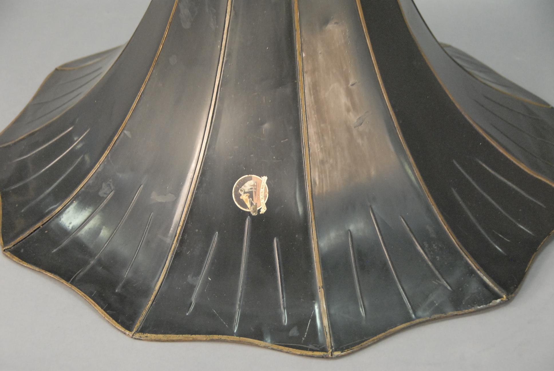 Large Victor talking machine metal horn with original decal. ht. 24in.