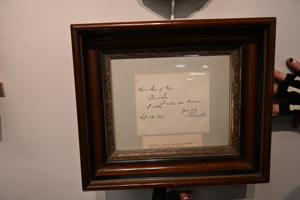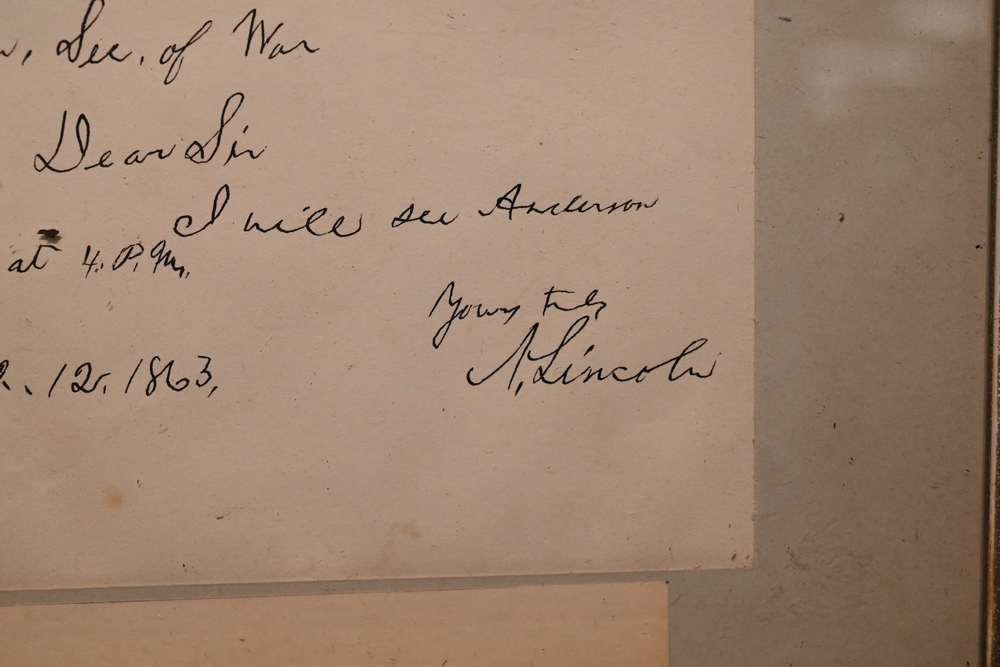 letter reads “Hon. Secretary of War, Dear Sir….I will see Anderson at 4PM…yours truly, A.Lincoln”