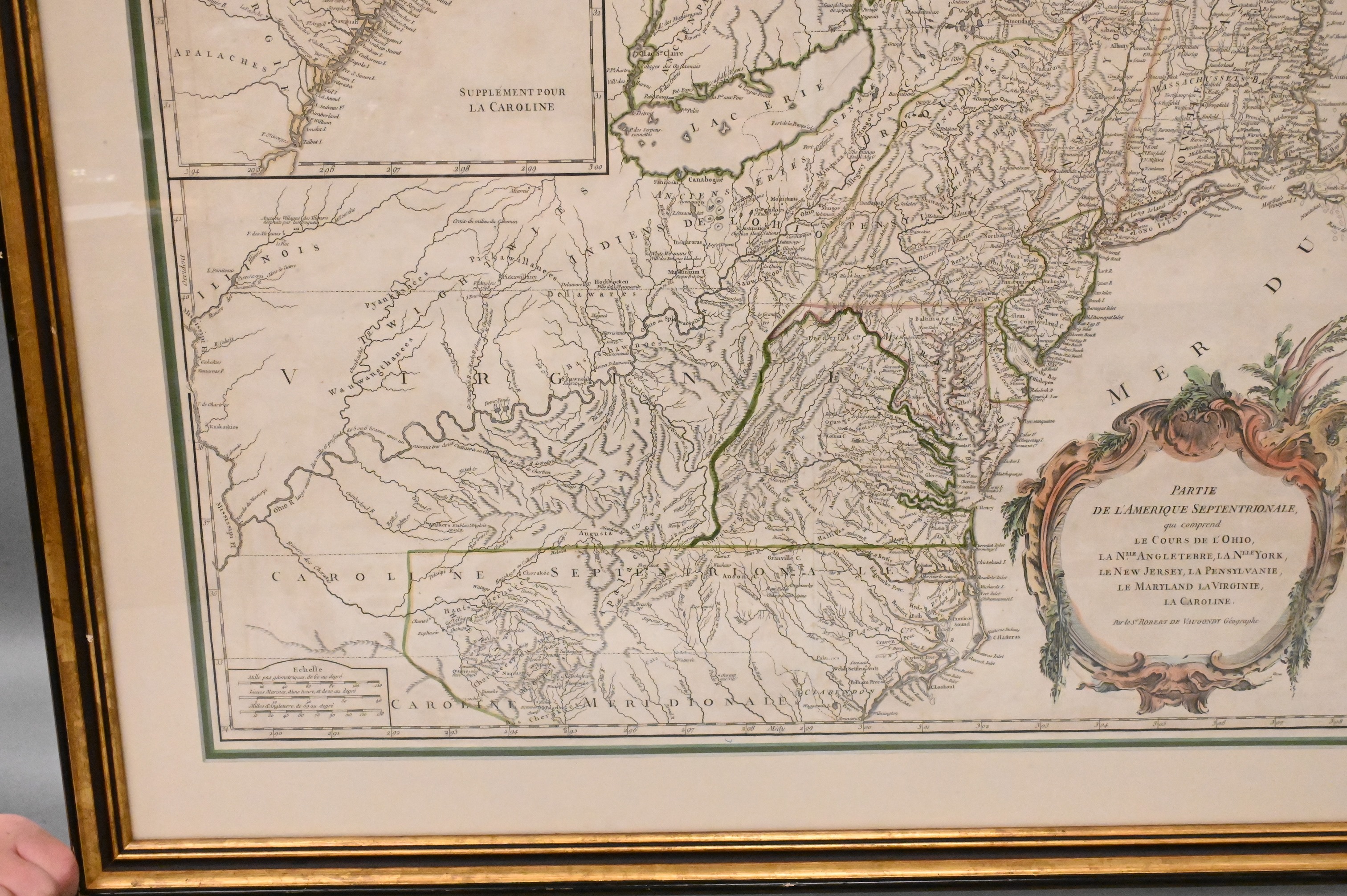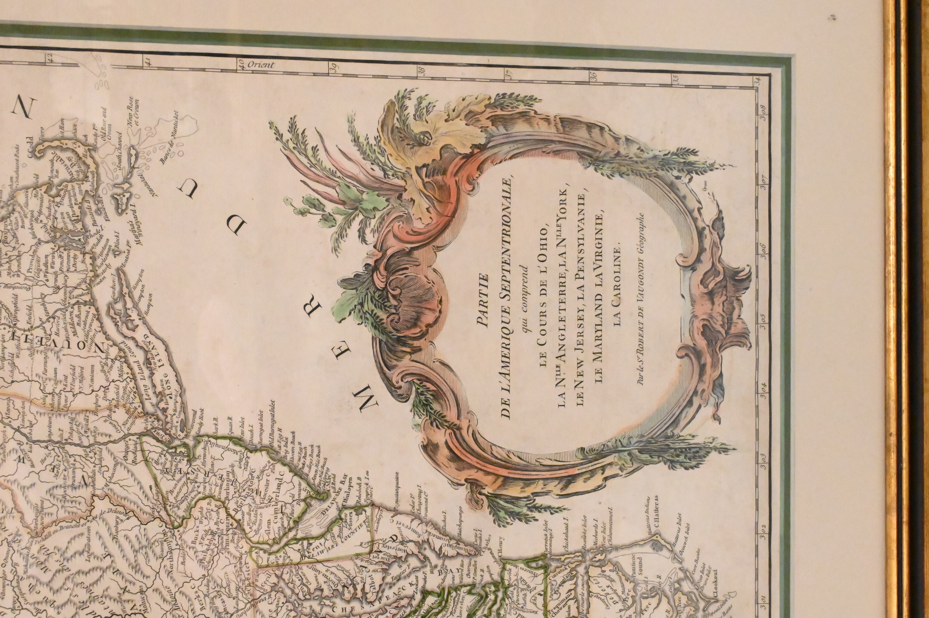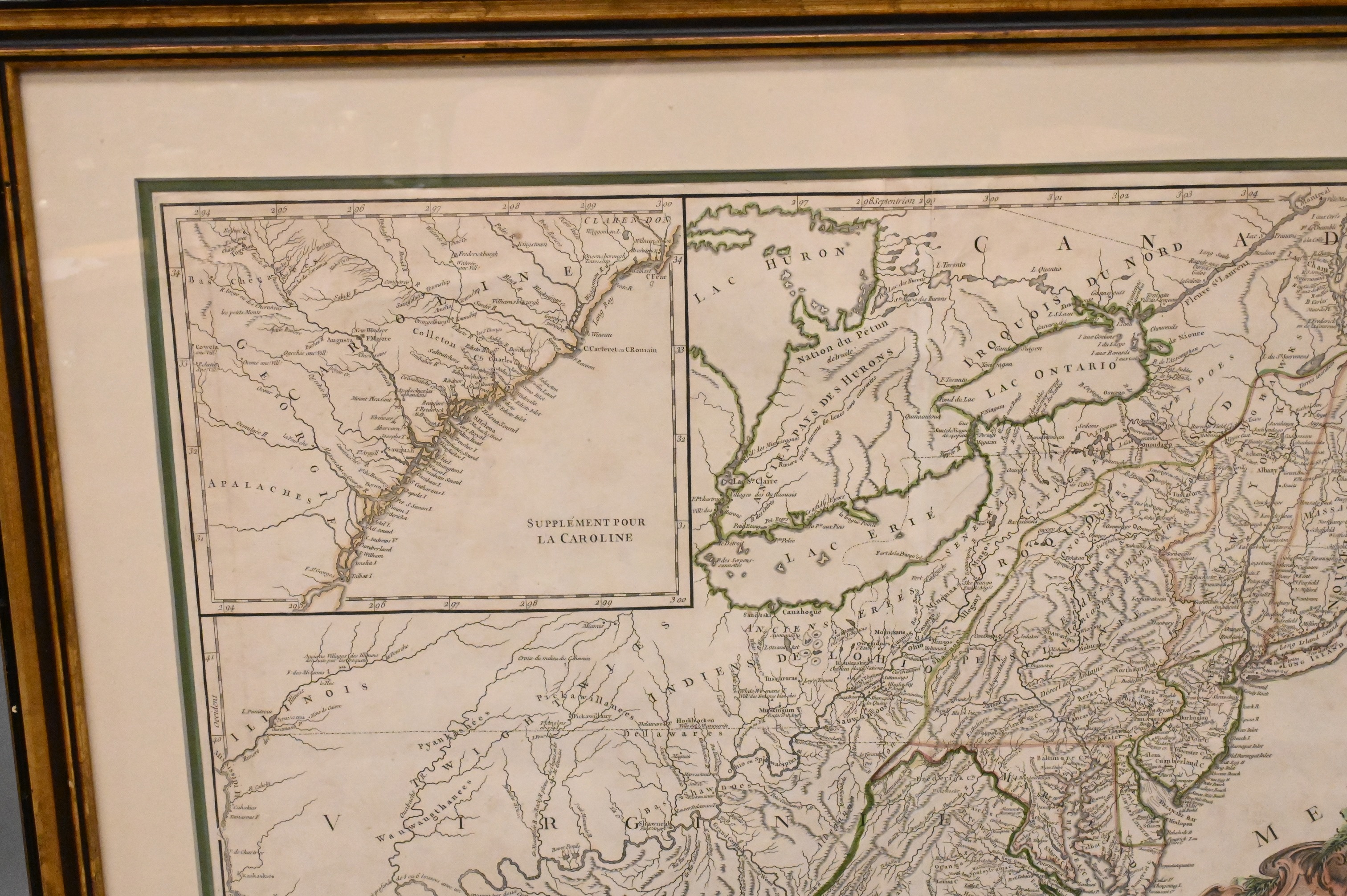 hand colored map engraving, originally published in Paris, 1755