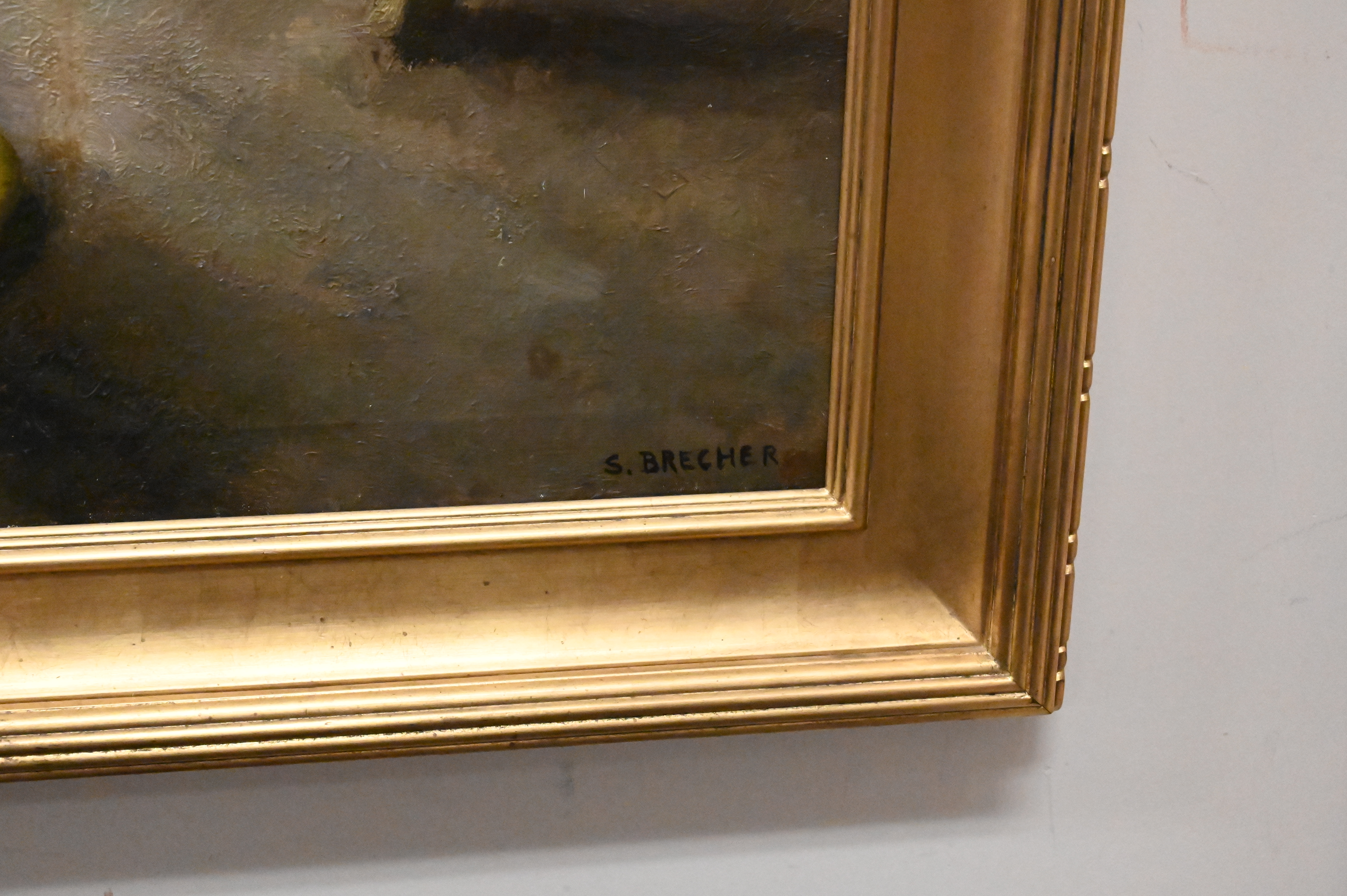 Signed lower right “S. Brecher”, signed, titled, and dated on stretcher bars