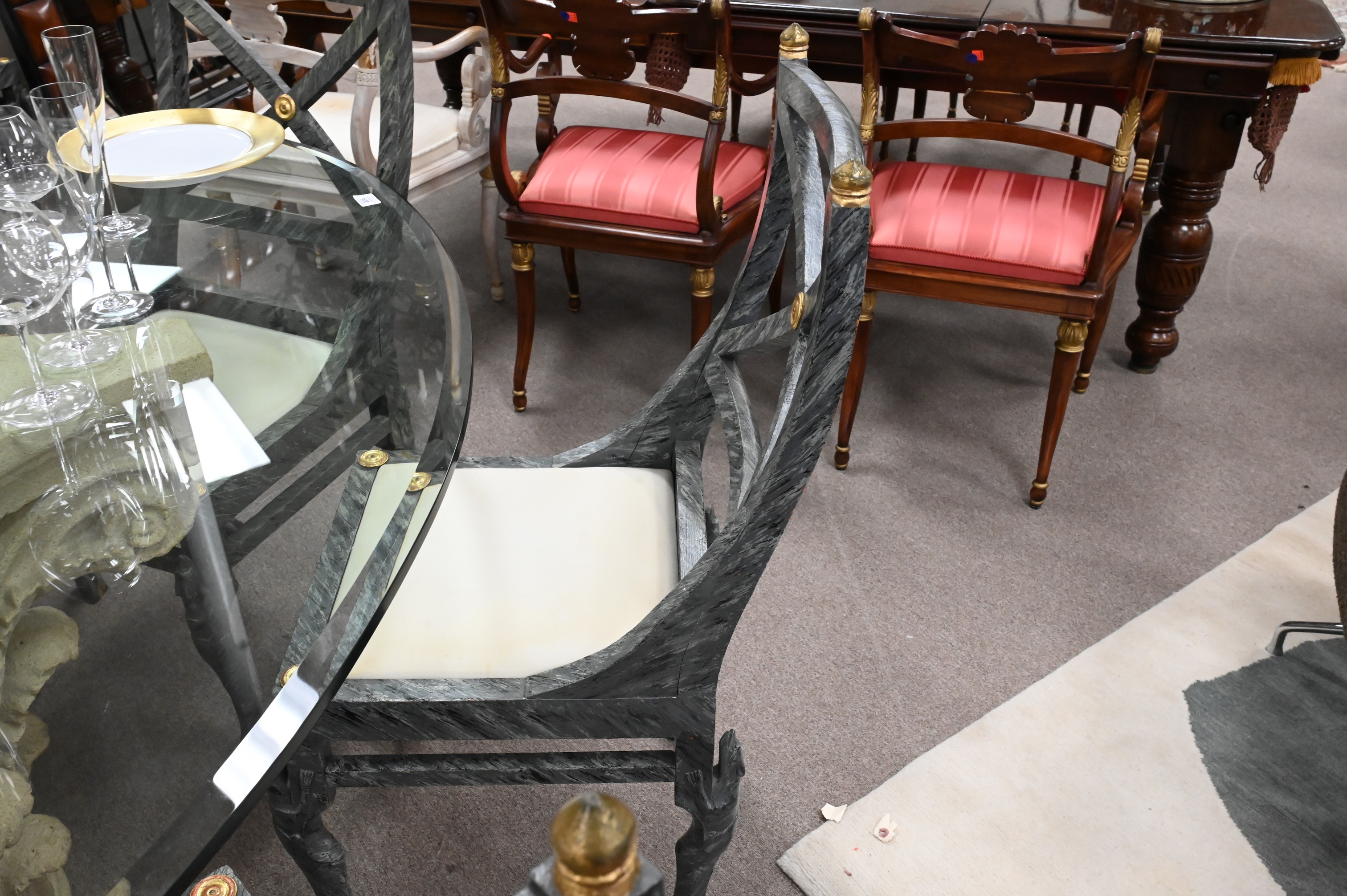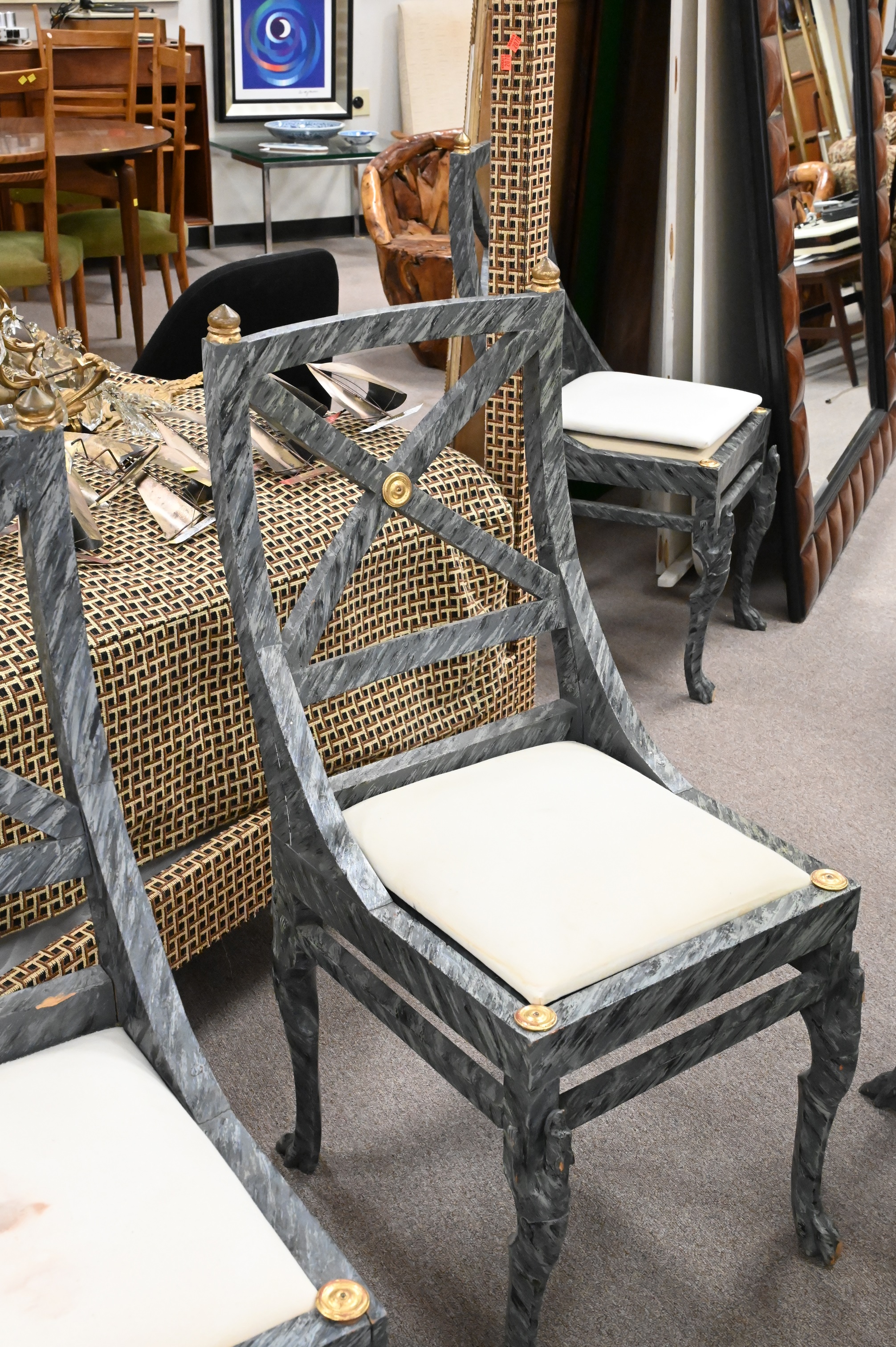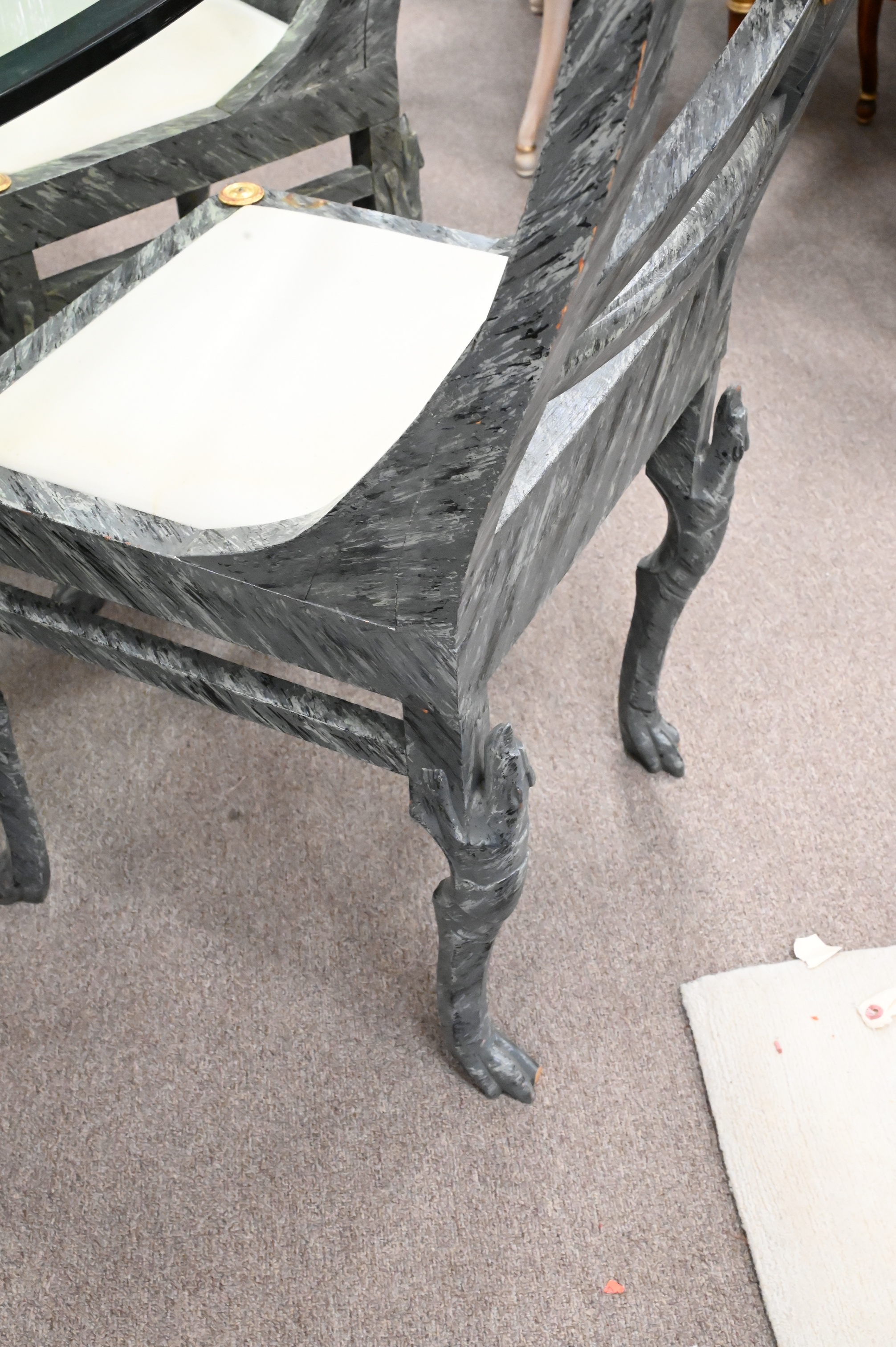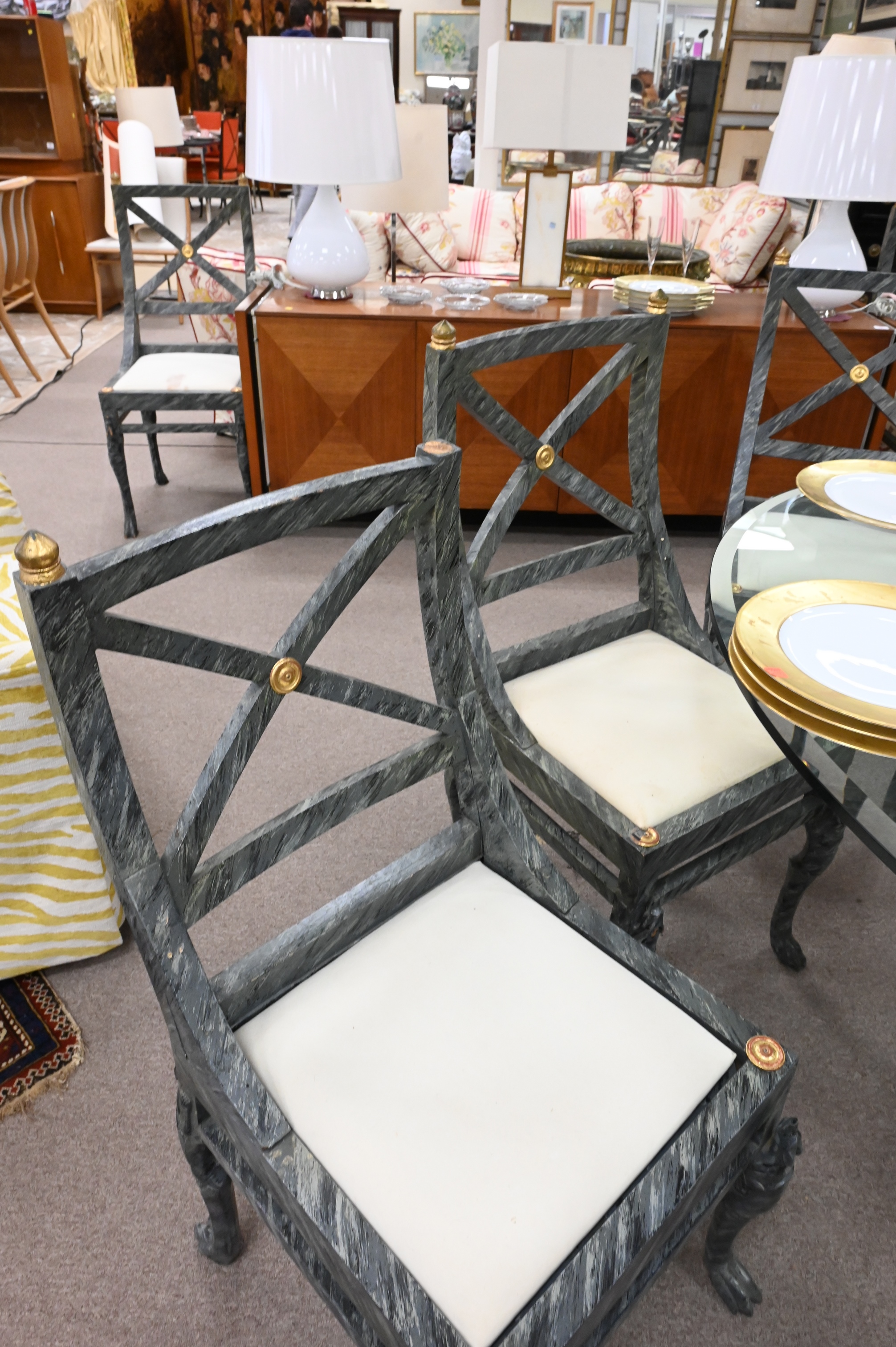 Set of 11 Paint Decorated Chairs, having X backs, lizards on legs, along with paw feet, two with front toe partially missing, height 40 inches, width 18 inches. Provenance: Property from a private New York collection sold to benefit charitable foundations.