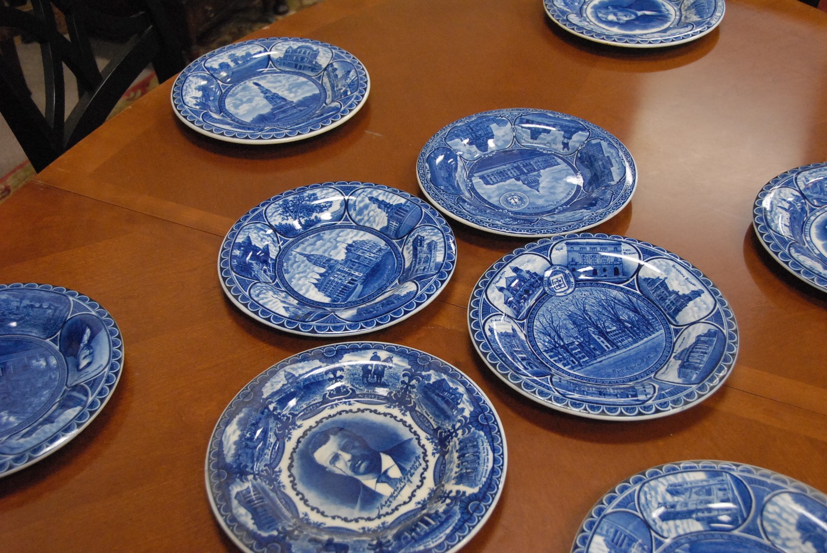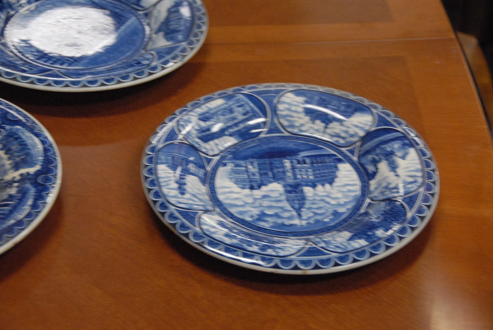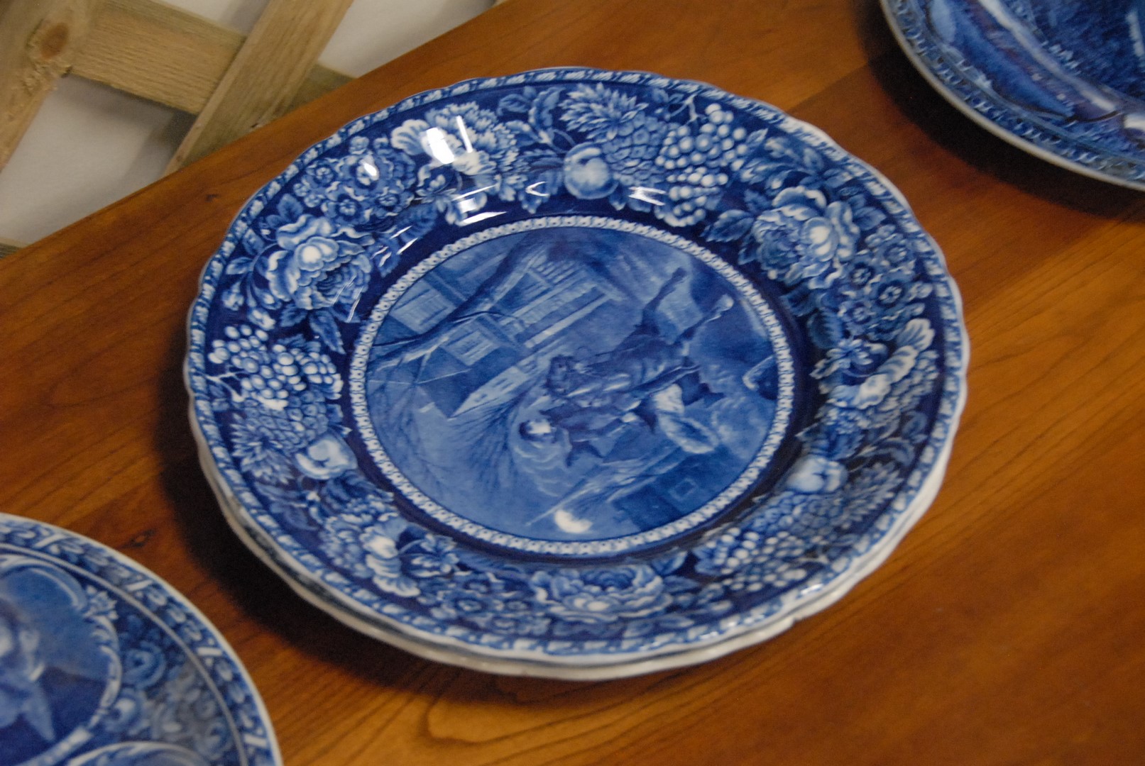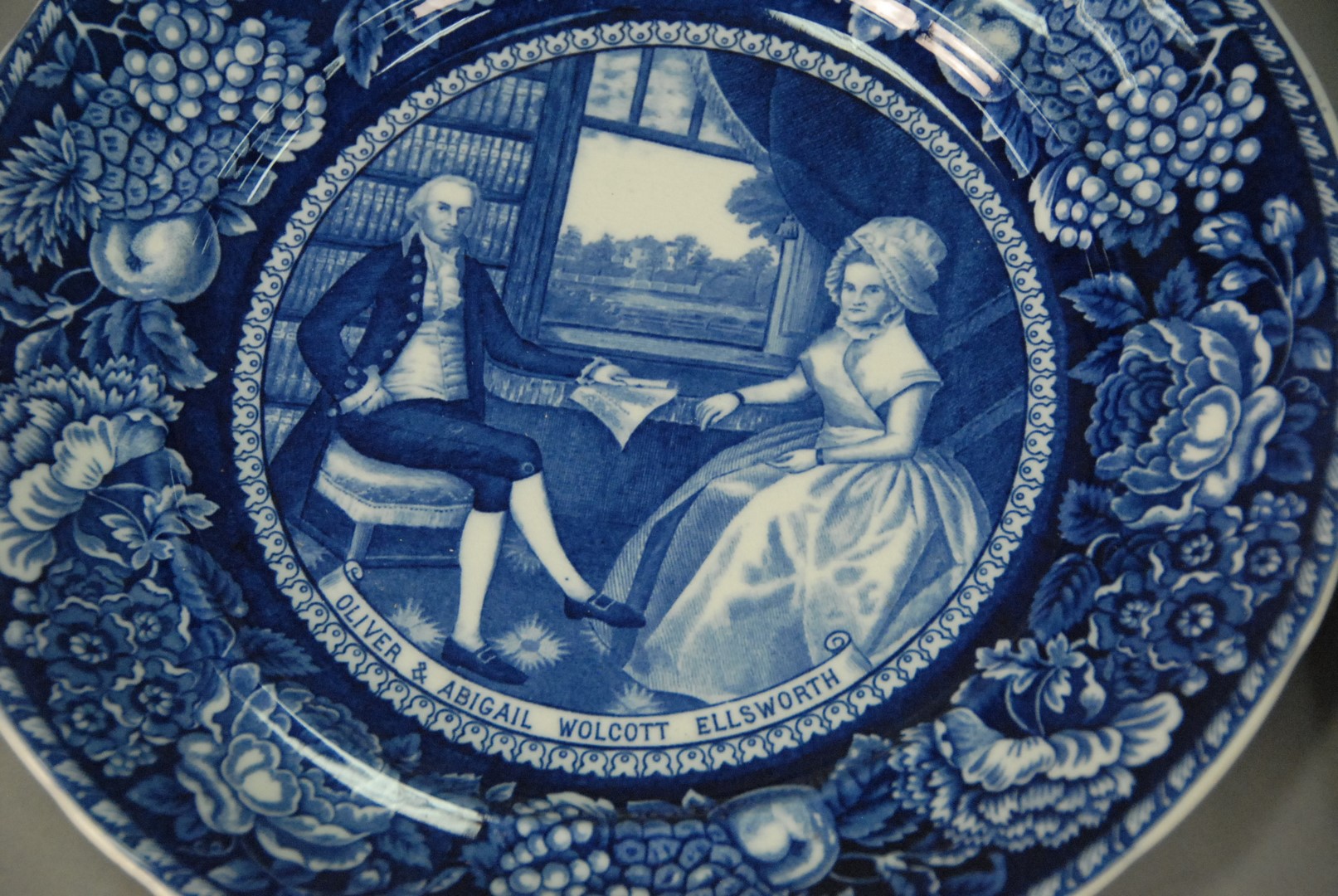 Lot 225: Set of eleven Staffordshire Rowland Marsellus souvenir blue and white plates along with a set of five plates. dia. 10
