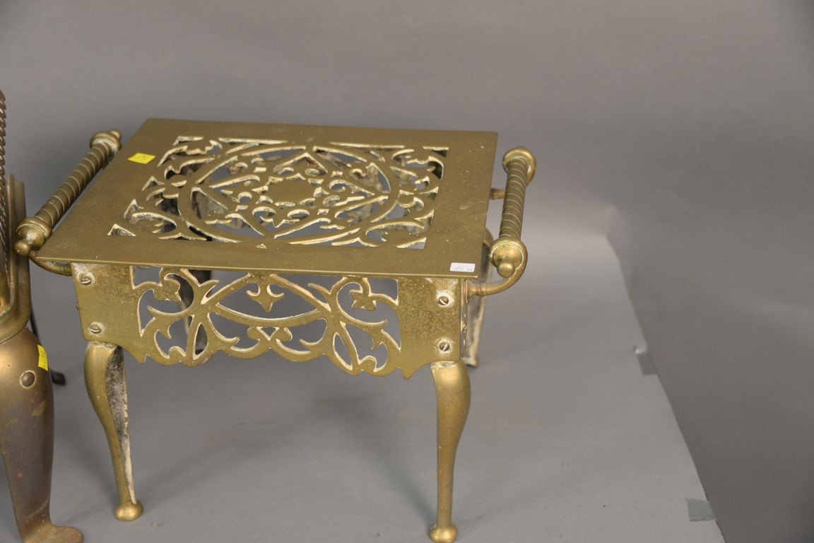 Two brass footman, 19th century, ht. 12 in. & 13 in.