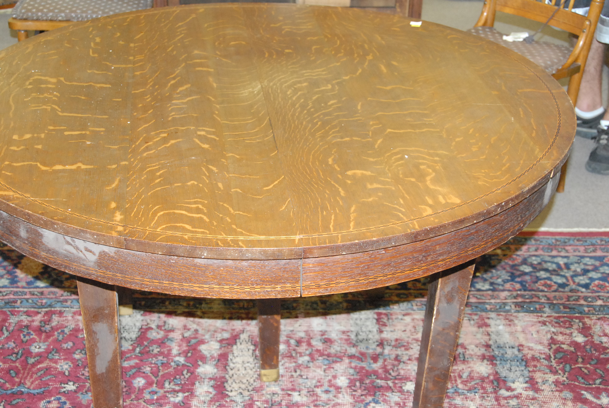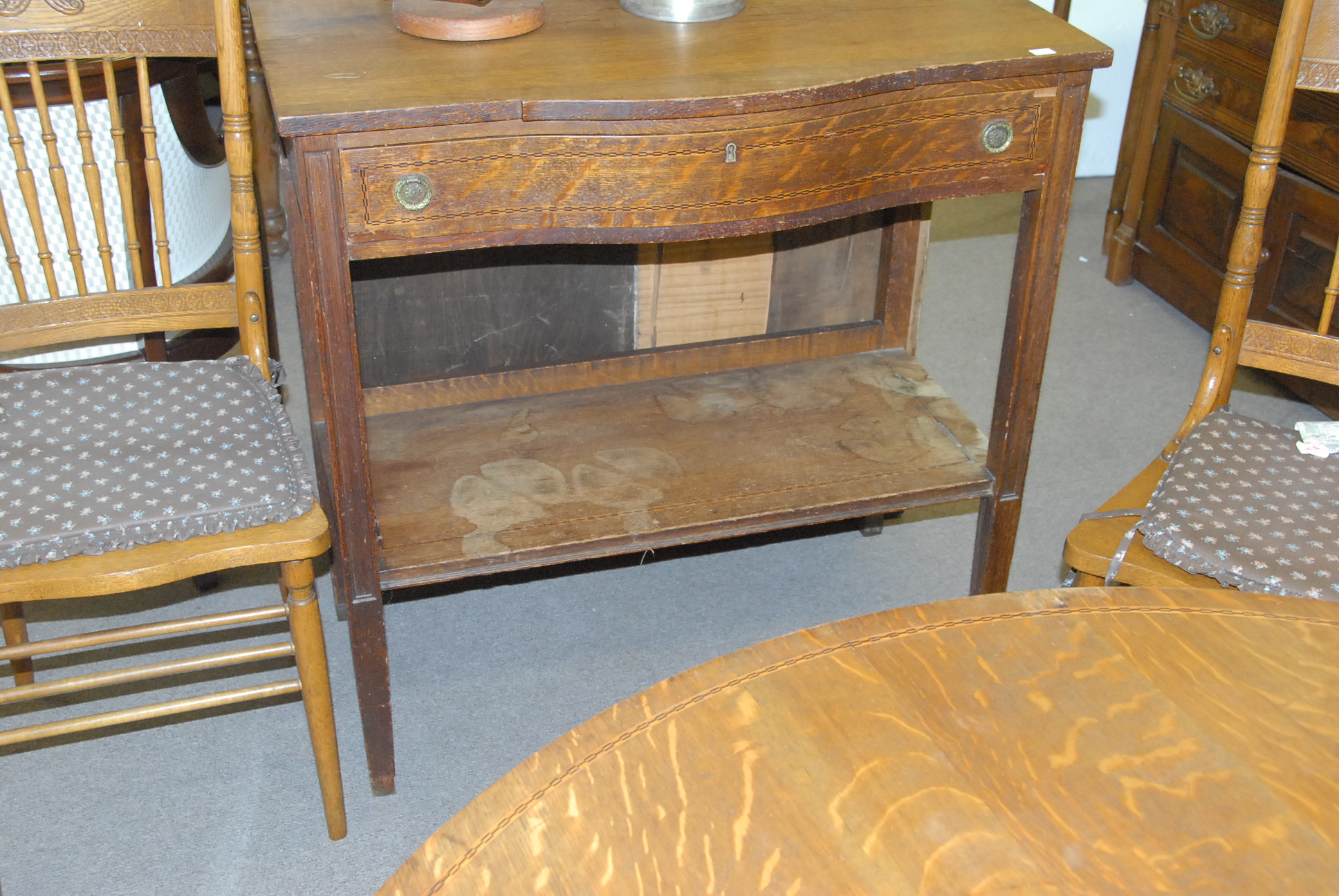 Victorian inlaid oak round dining table and matching server
