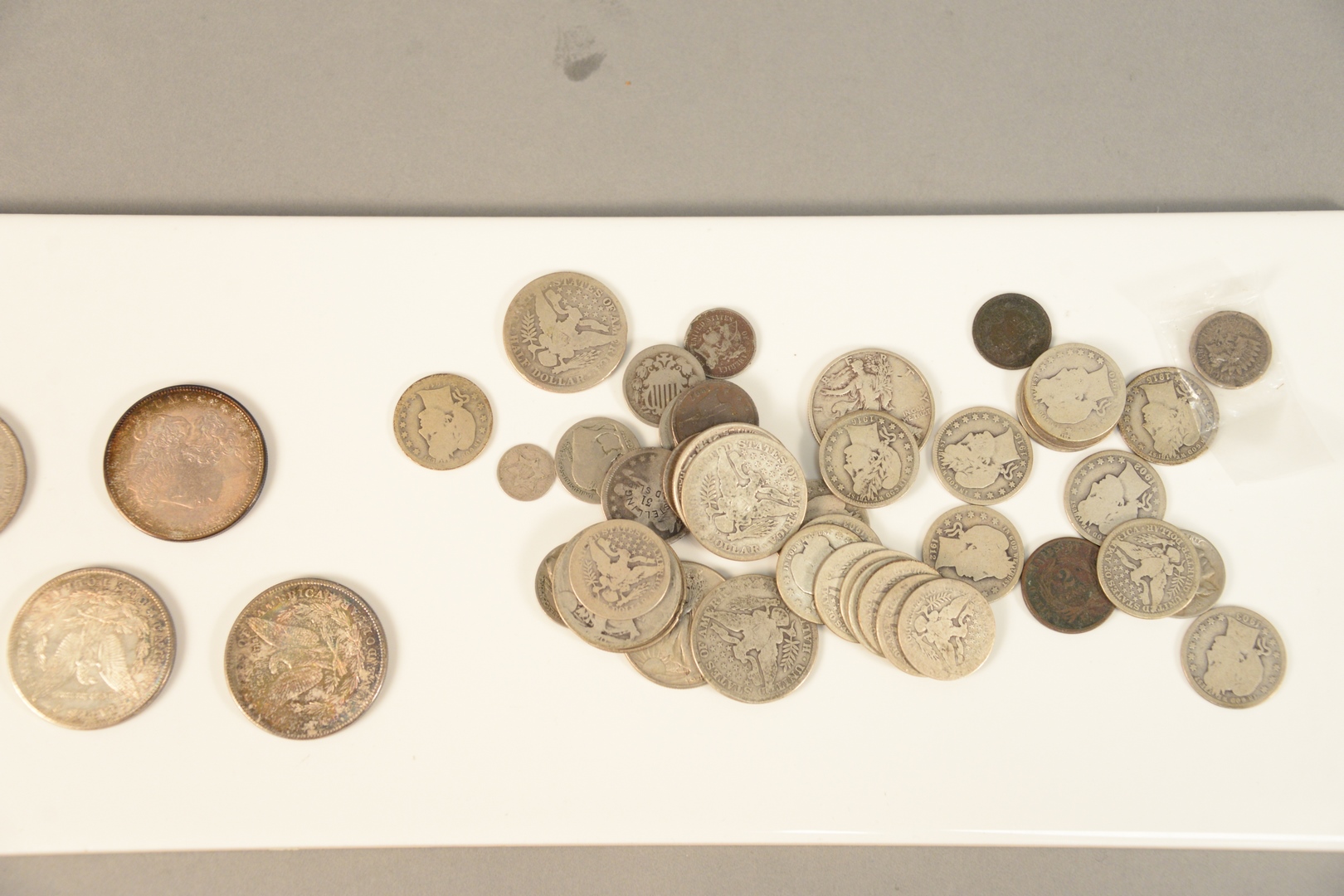 4 Silver dollars to include 2 -1878-S uncirculated 1-1878, 1921-s plus 1-1893 Columbian commemorative along with mixed lot mostly silver 90%, 10.50 face with barber quarters 24 barber halves and more plus some circulated type coins.