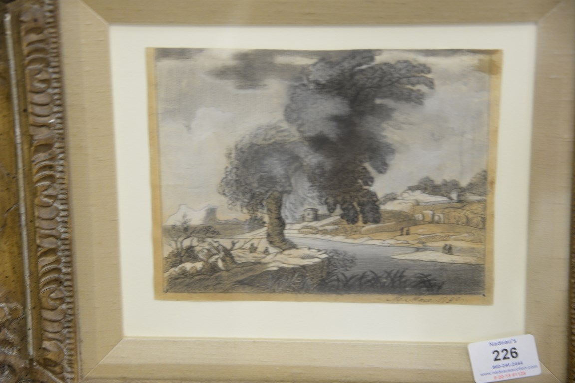 Colored drawing on paper marked lower right M. Mace 1790, 18th century. sight size 6 x 8