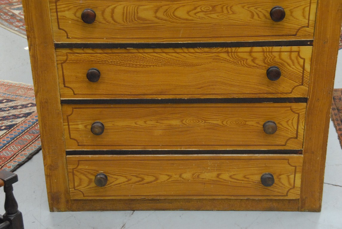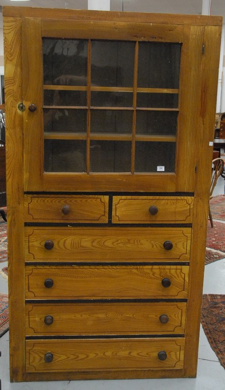 Lot 226: Grain painted cupboard with a single glazed door over two drawers over four drawers. ht. 80in. wd. 43in. dp. 15in.