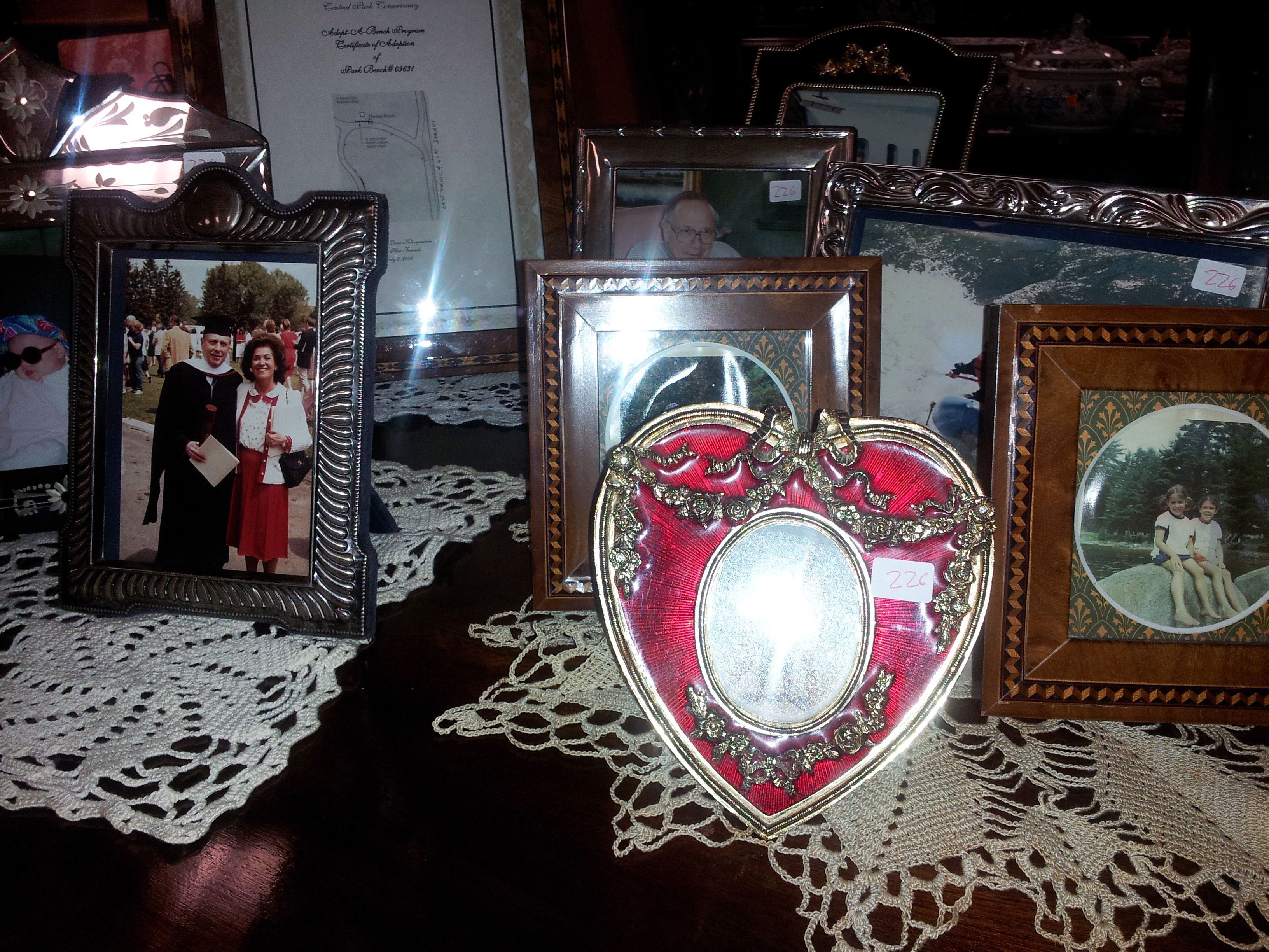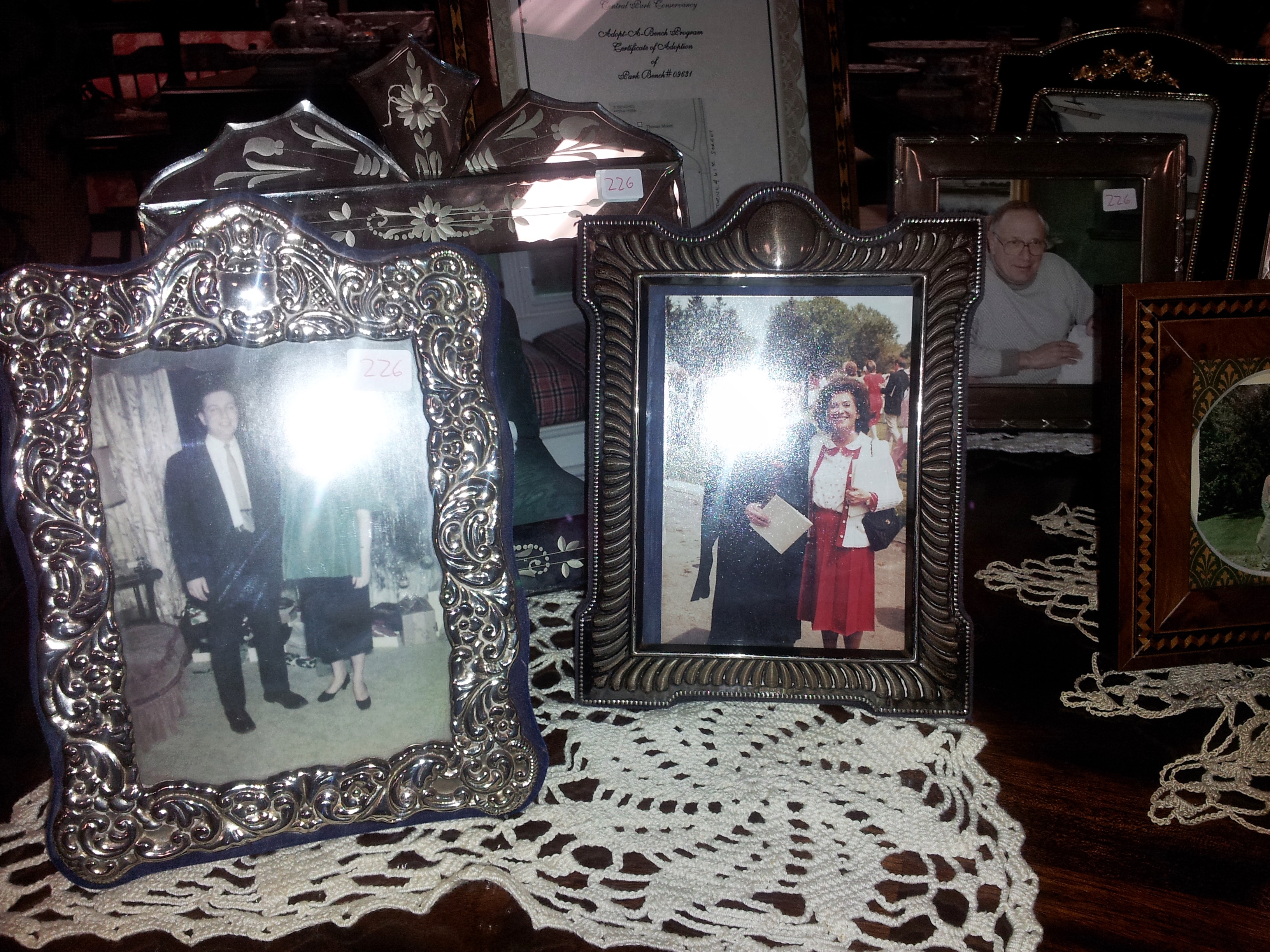 Lot 226: Group of eleven frames to include Venetian glass frame, three inlaid picture frames, two enameled picture frames, and four silver fr…