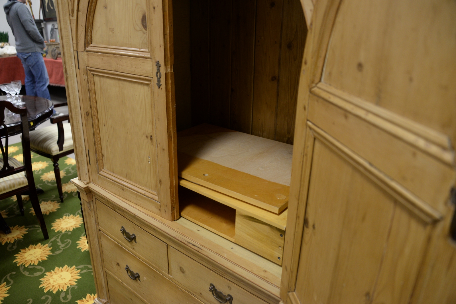 Irish pine tv cabinet. ht. 72in., wd. 44in., dp. 26in.