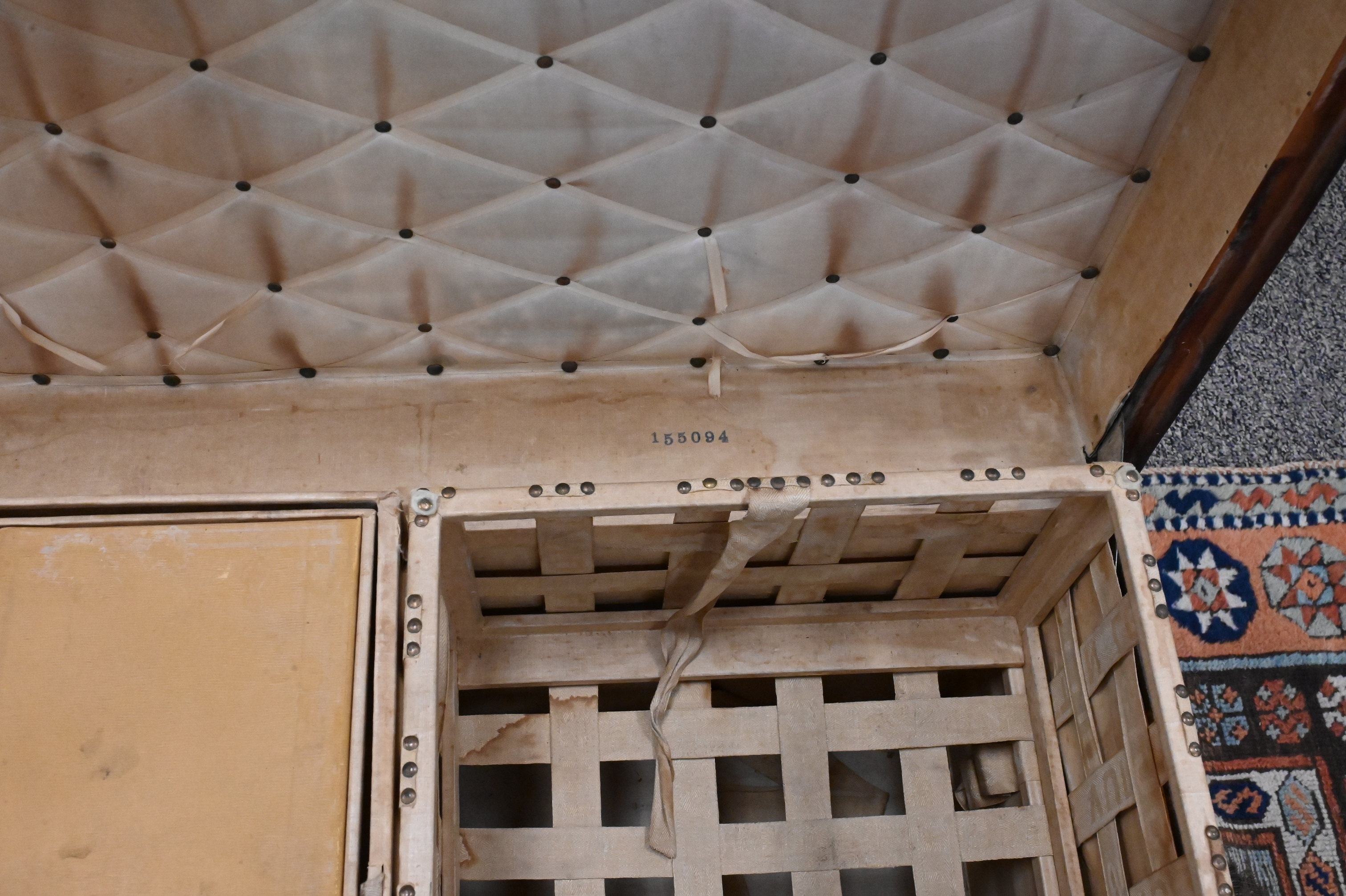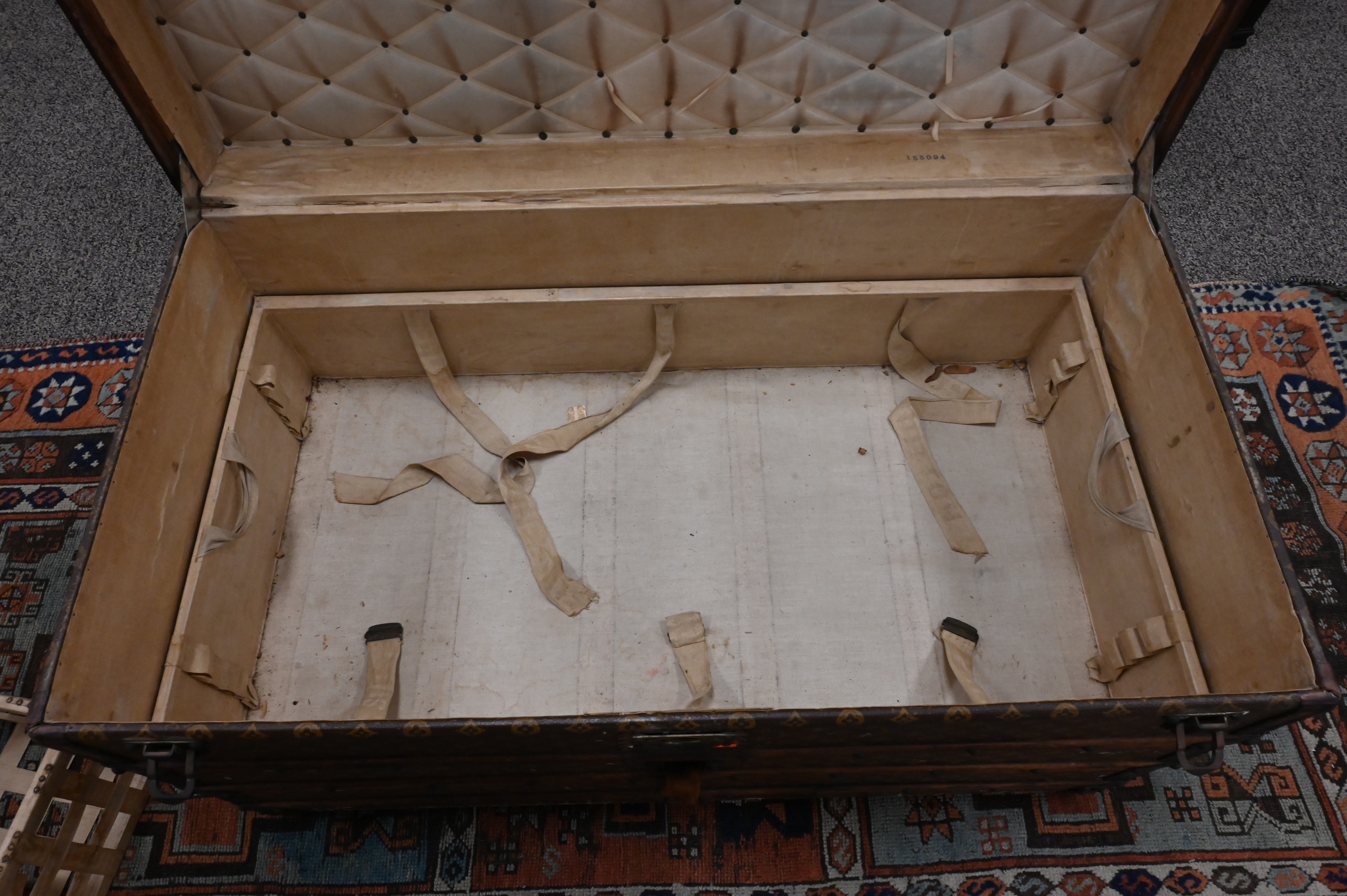 having four interior trays, stamped #155.094, stenciled on end LD St. Louis