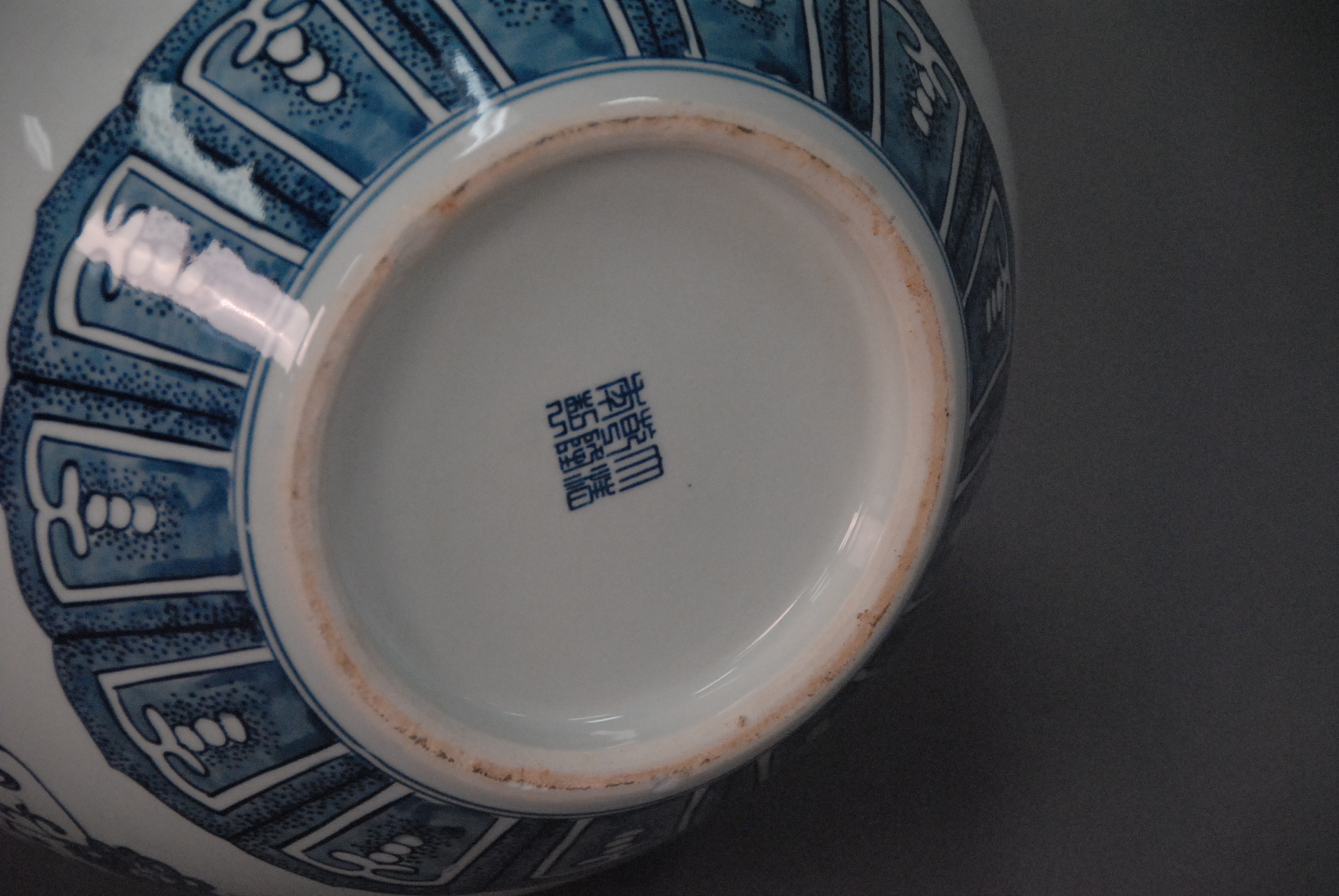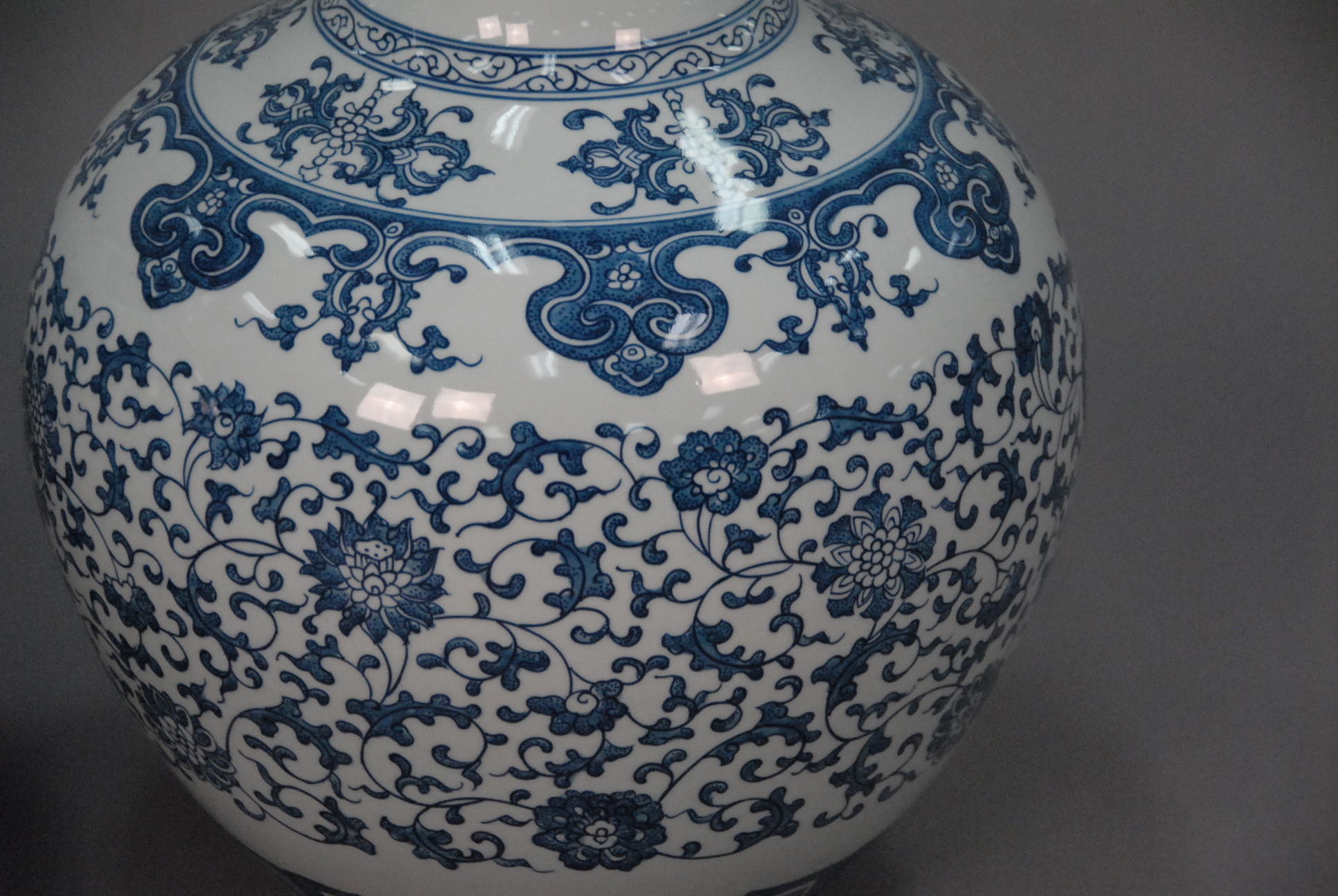Pair of large Oriental porcelain blue and white globular vases, ht. 24in.