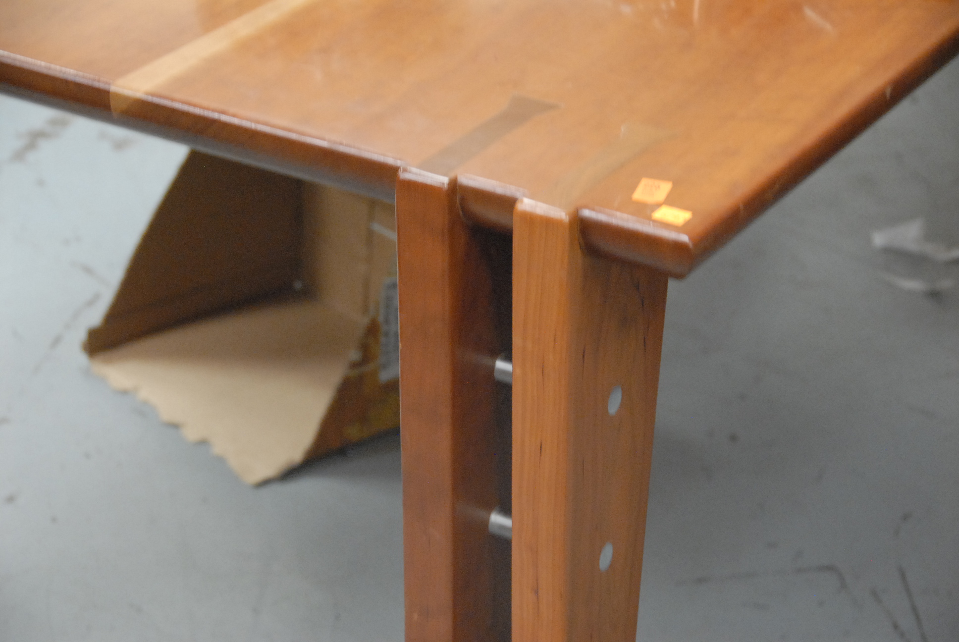 Lot 226: Studio Craft Movement custom dining table of solid cherry with aluminum accents with the top supported by four sets of parallel legs…