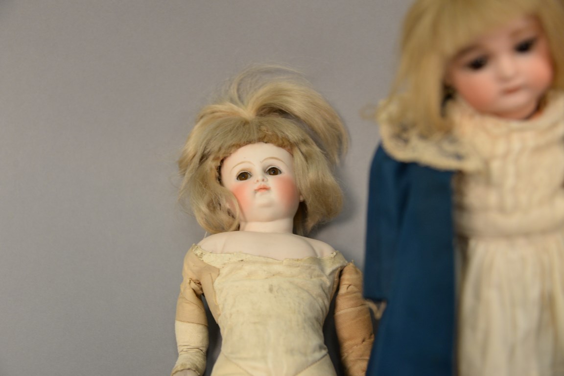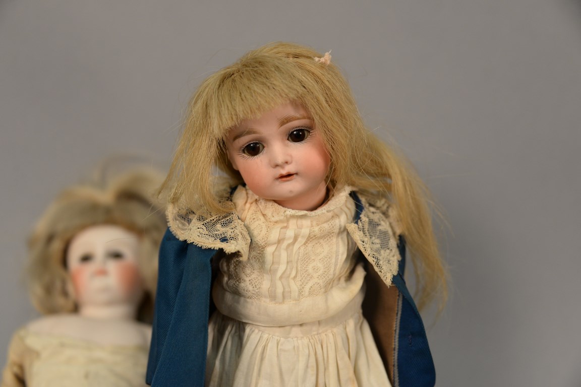 Two small bisque head dolls, 19th century. ht. 10 in. & 12 in.