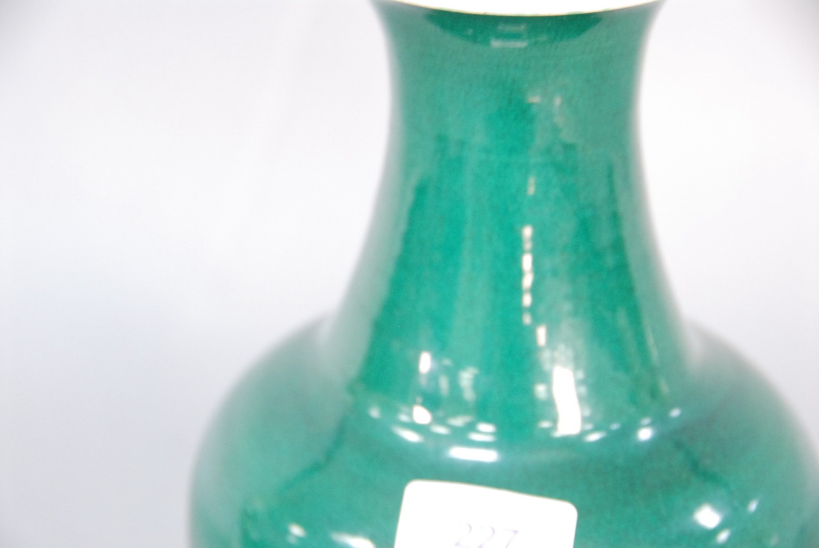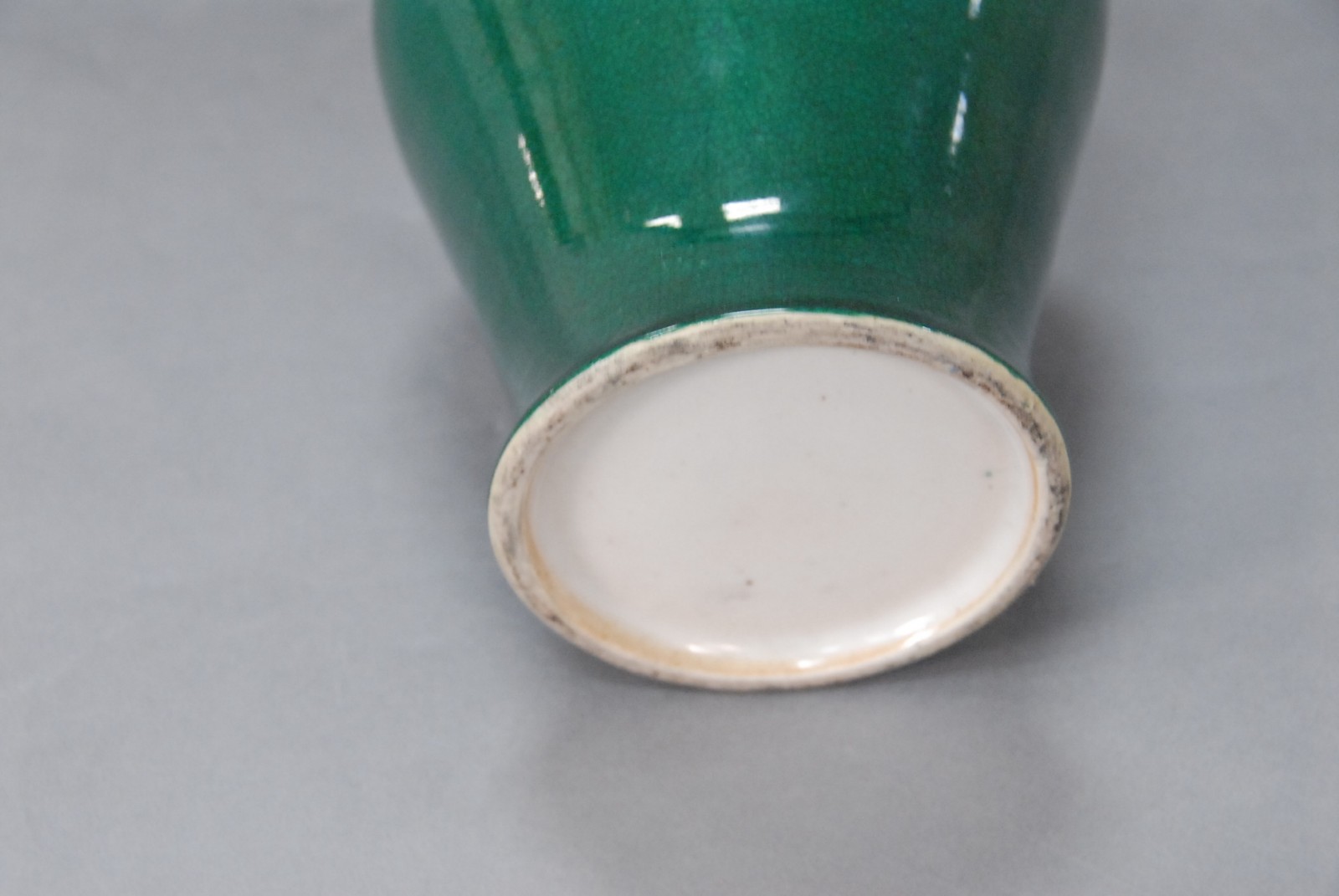 Chinese green glaze monochrome Yen Yen vase, possibly Hsien Feng, mid 19th century.