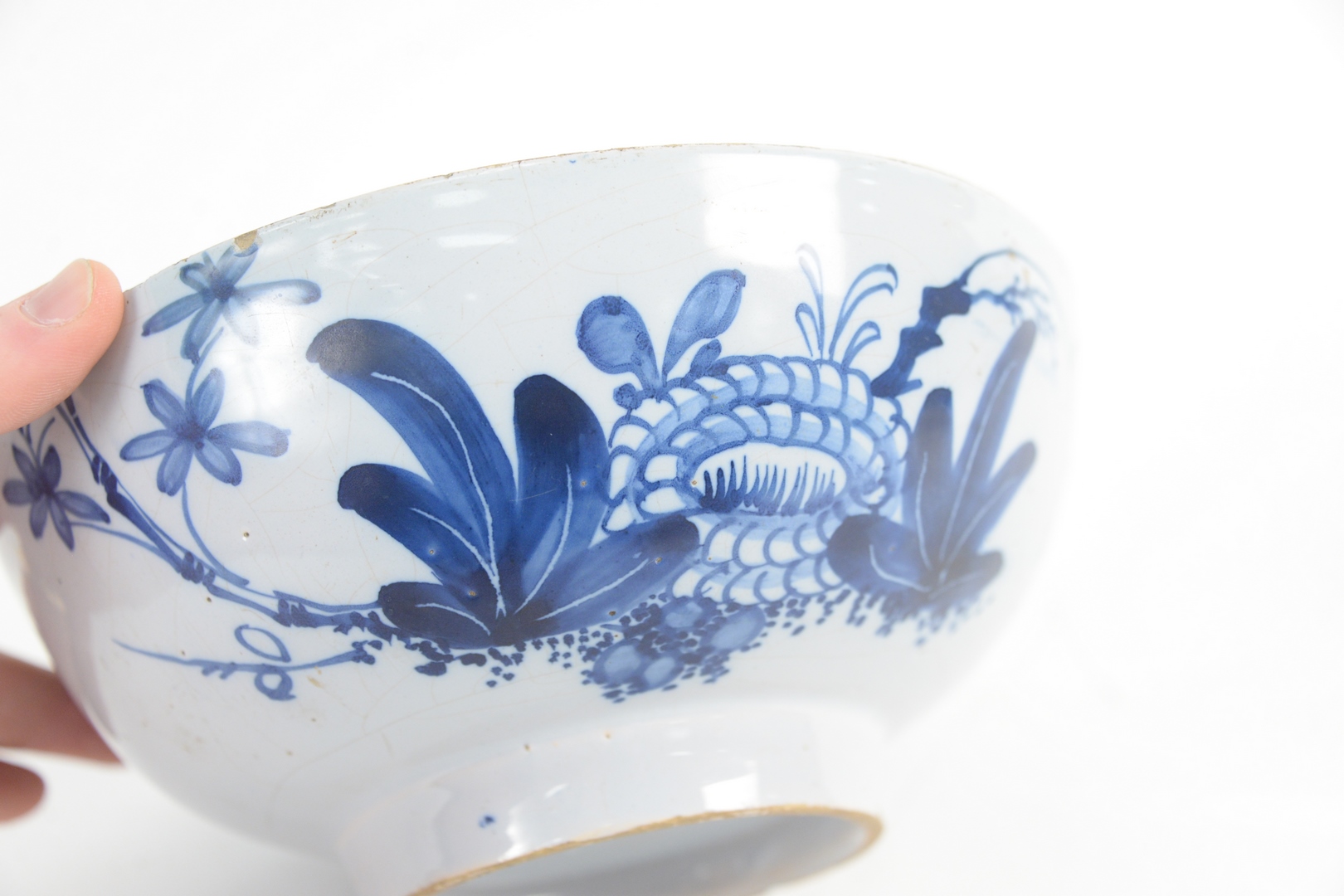 Lot 227: Delft Bowl interior marked Success to British Arms in America, 18th Century, small rim repair, height 4 inches, diameter 9 inches. Provenance: From a Newport, Rhode Island historic home, in the same family since 1761.