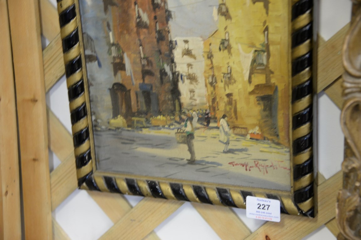 Lot 227: Giuseppe Rispoli 1888 oil on canvas mounted on board Mercato signed lower right Giuseppe Rispoli. 11 1/2 x 9 1/2
