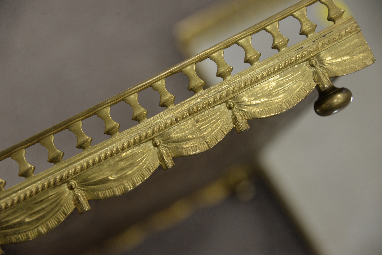 Lot 227: Neoclassical Three Part Mirrored Tray, having brass gallery, length 46 inches, width 20 1/4 inches.