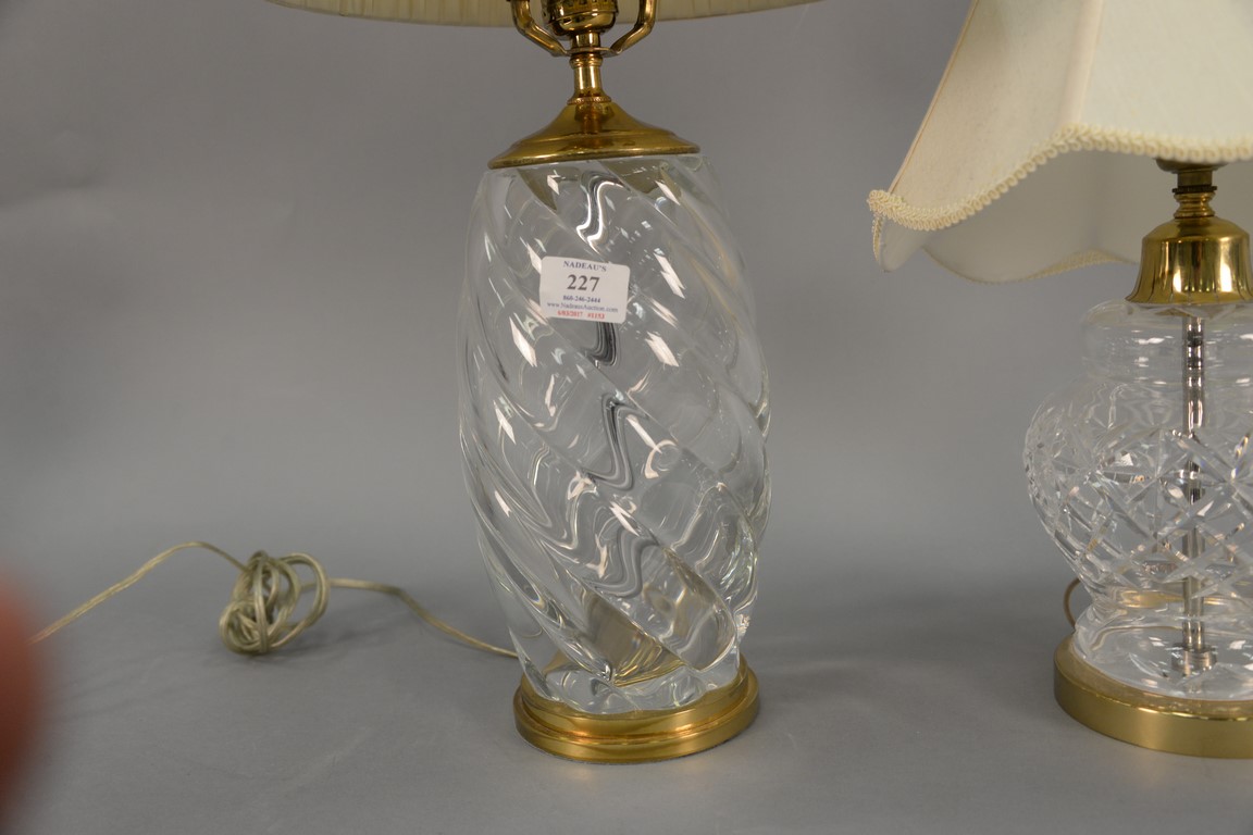 Lot 227: Two piece crystal lamp lot to include small Waterford lamp and heavy Baccarat crystal lamp. ht. 17in. and 23in.
