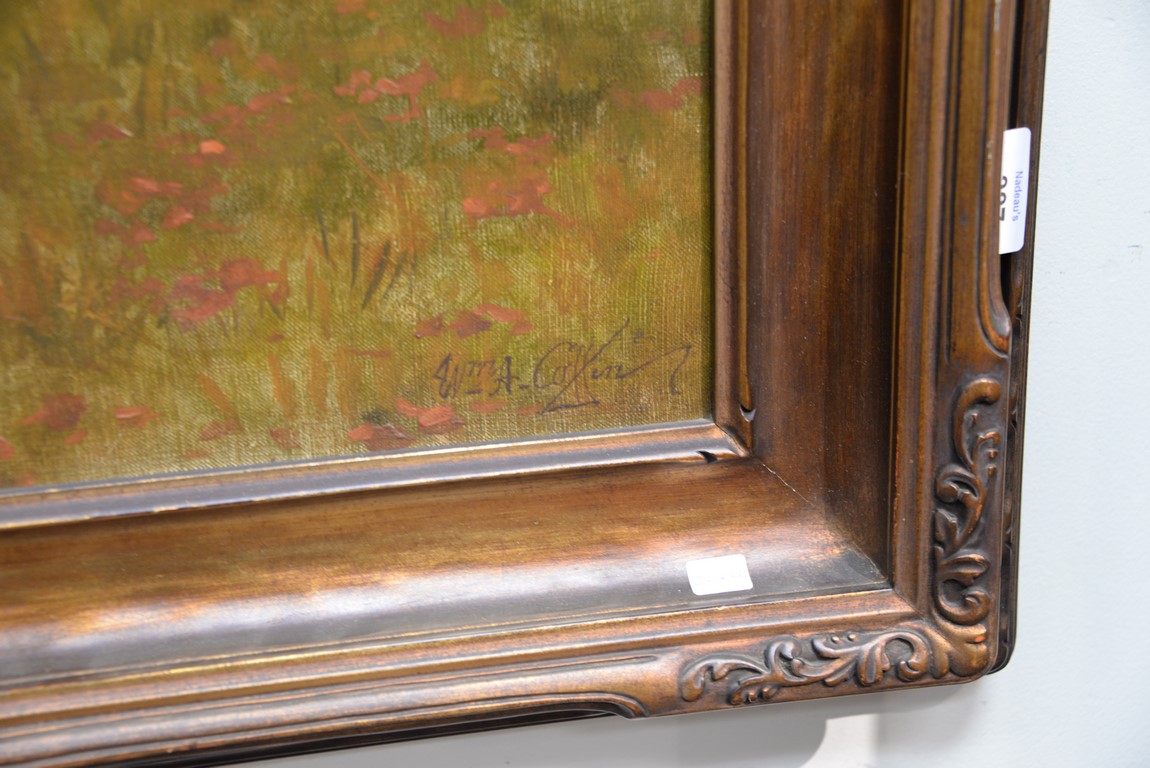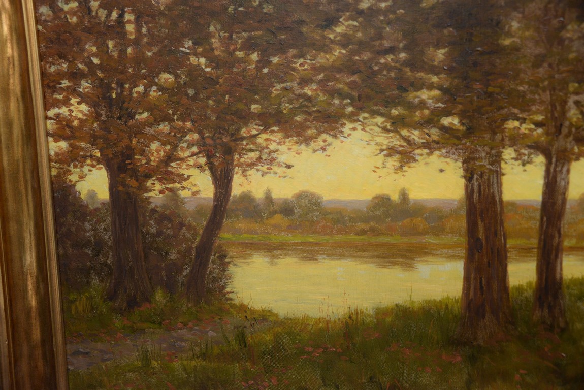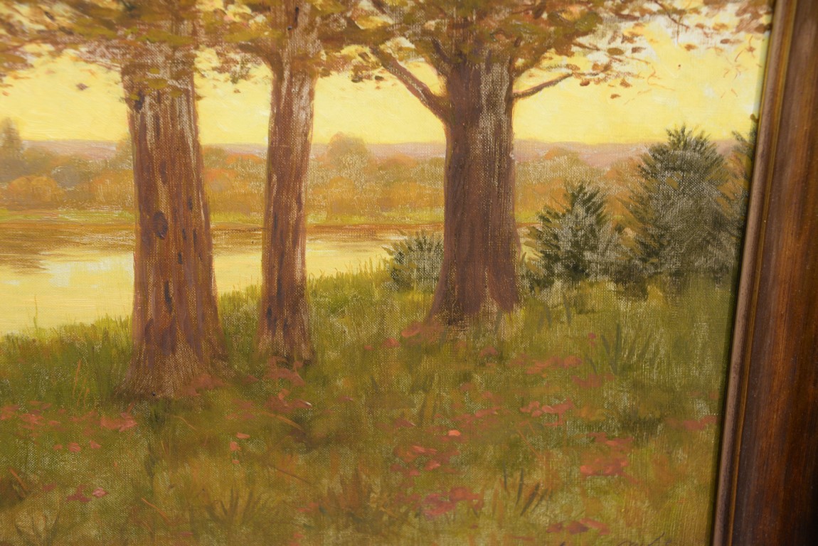Lot 227: William Anderson Coffin 1855-1925 Fall Landscape Pond’s Edge oil on canvas signed lower right: Wm. A. Coffin relined 20 x 30