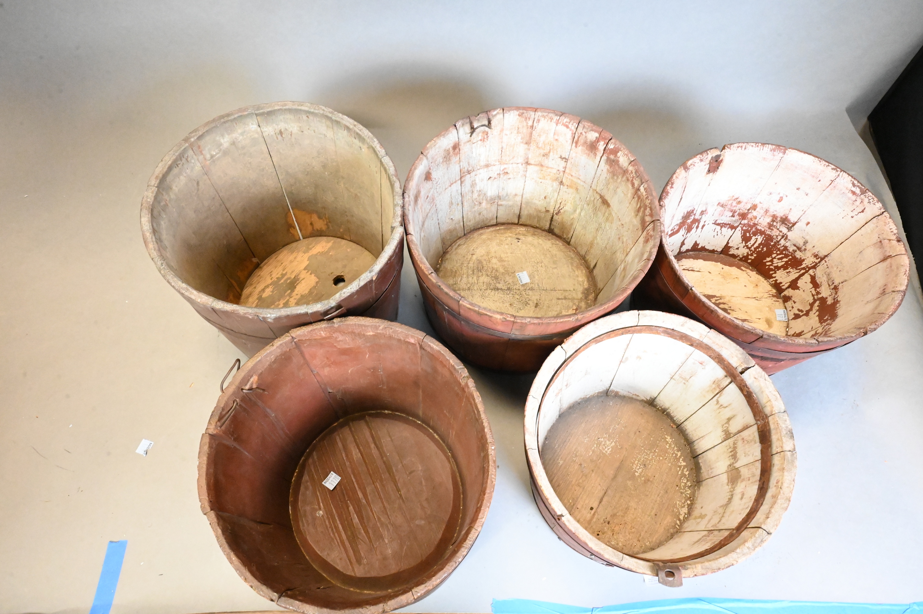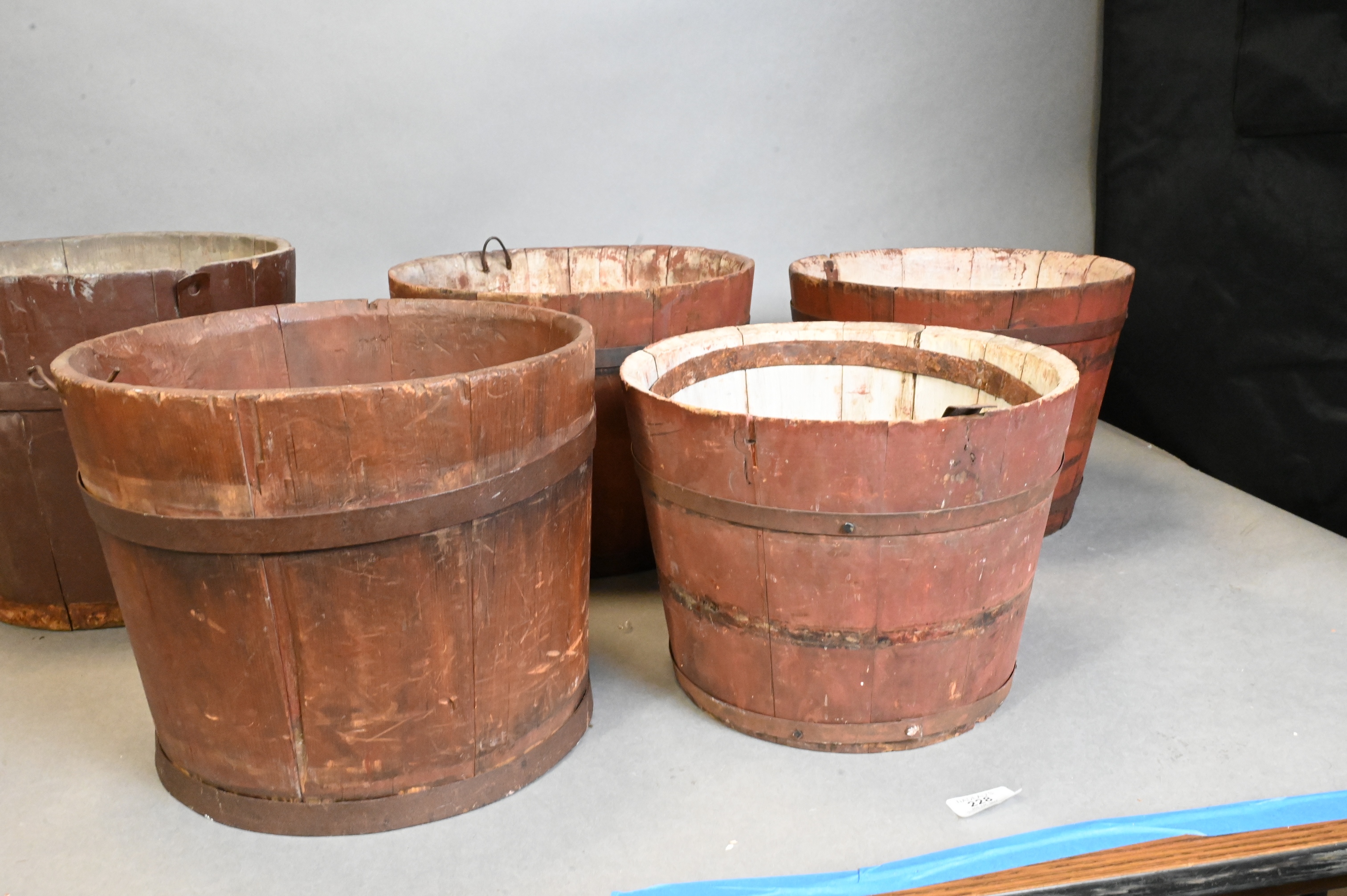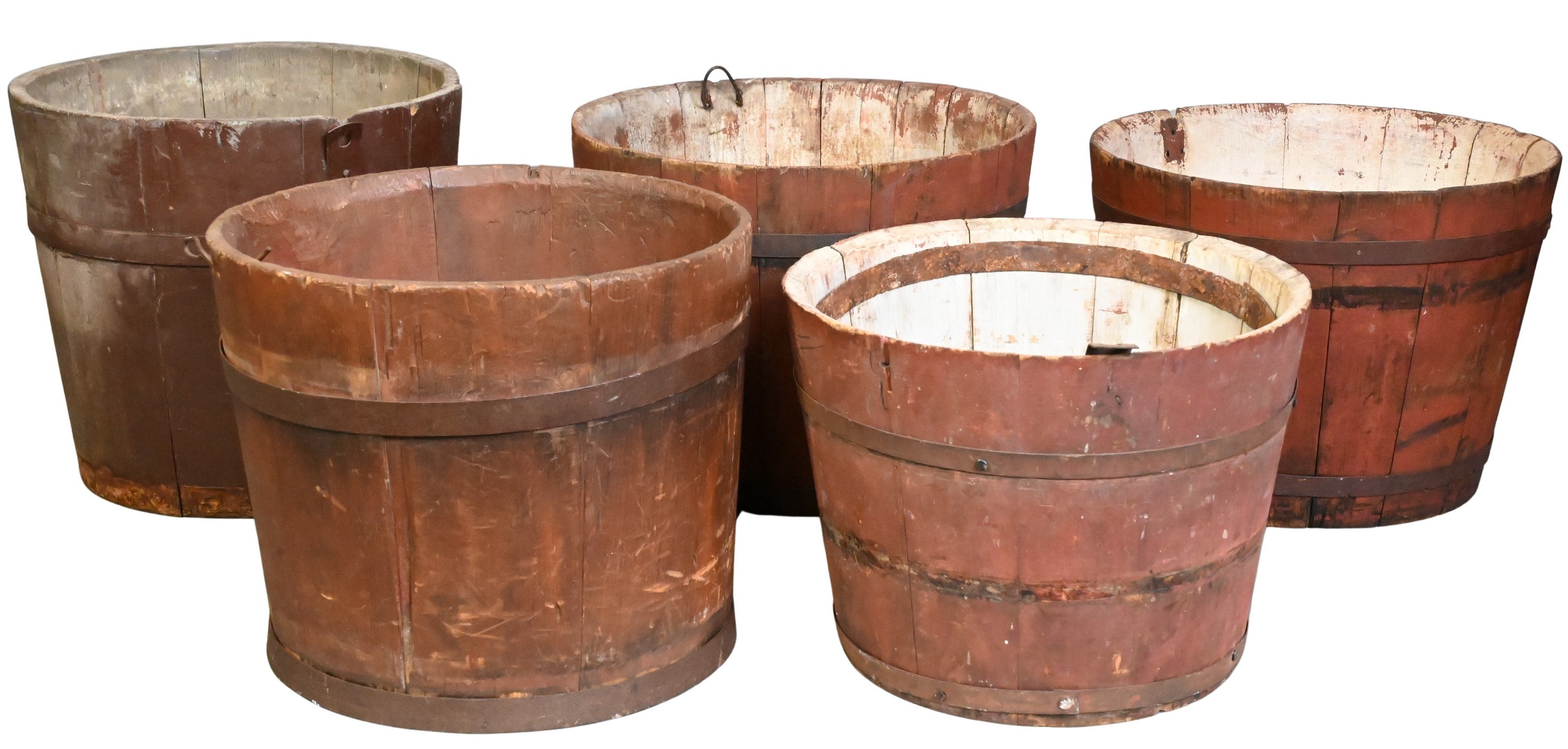 Five Various Buckets with Metal Staves