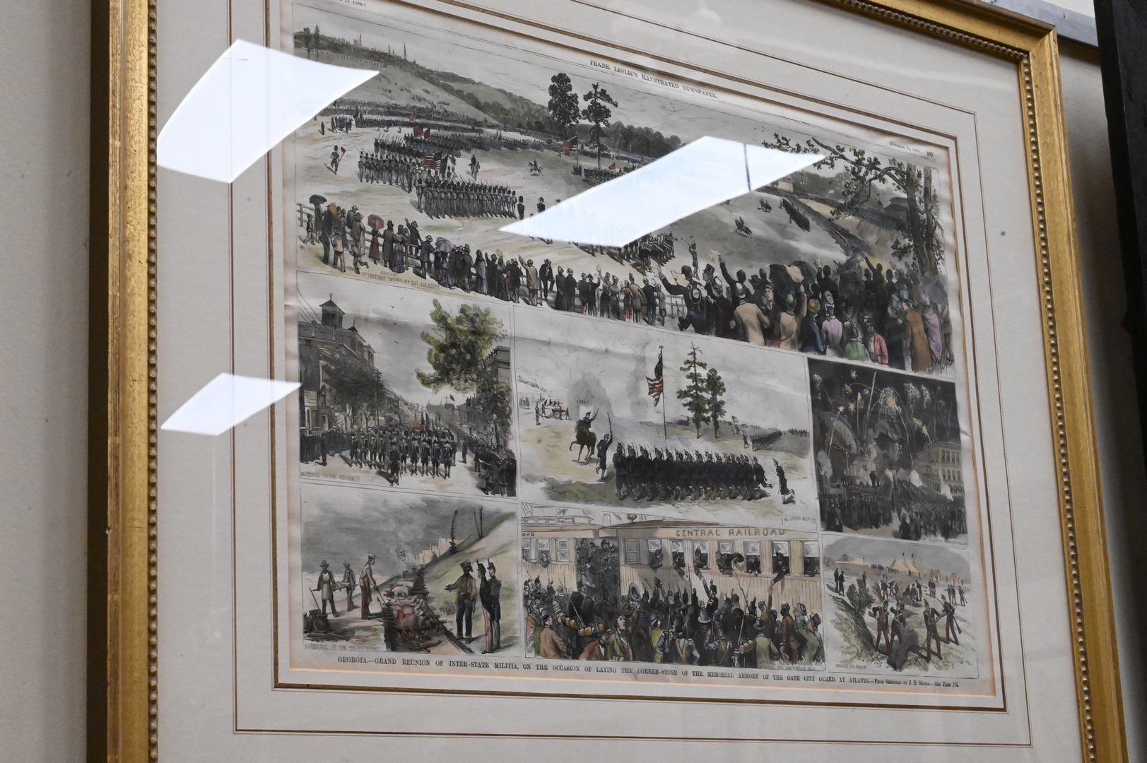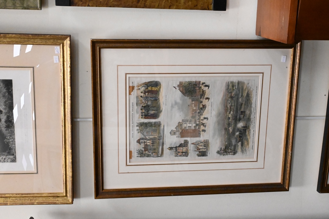 Group of Six Framed Prints/Lithographs, to include four Frank Leslie’s Illustrated, one Harper’s Weekly, along with a black and white engraving of General Lee at the Grave of Stonewall Jackson by John McRae, sight size 10 1/4″ x 15 1/4″ – 15 1/4″ x 21 1/2″. Provenance: From a Private Collection Acquired from Credit Suisse’s Americana Collection.