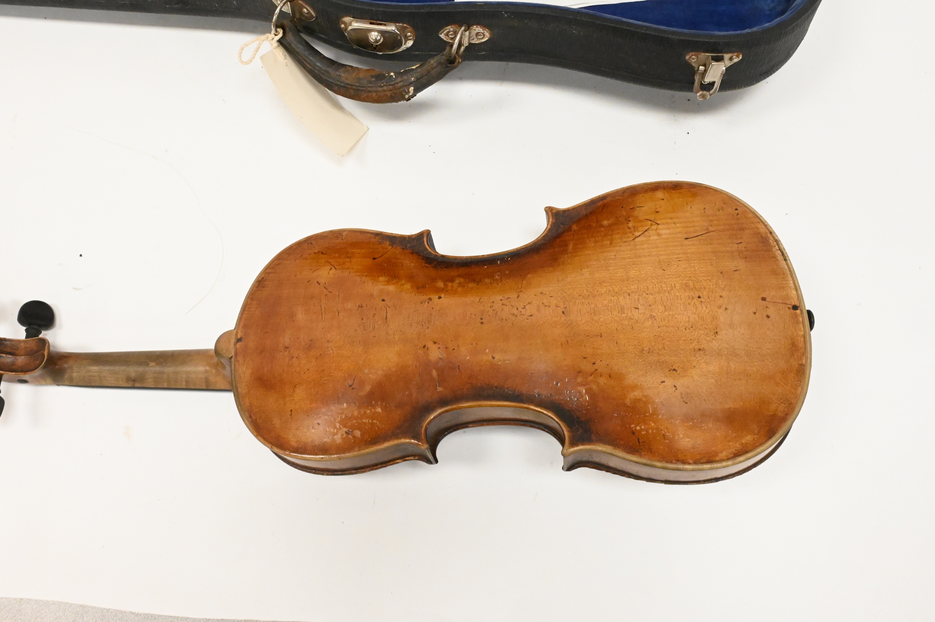 Johann Baptist Schweitzer Violin, with interior label “Johann Baptist Schweitzer 1814”, together with Vuillaume bow in hard case, as is, Provenance: Estate of Donald K. Huber