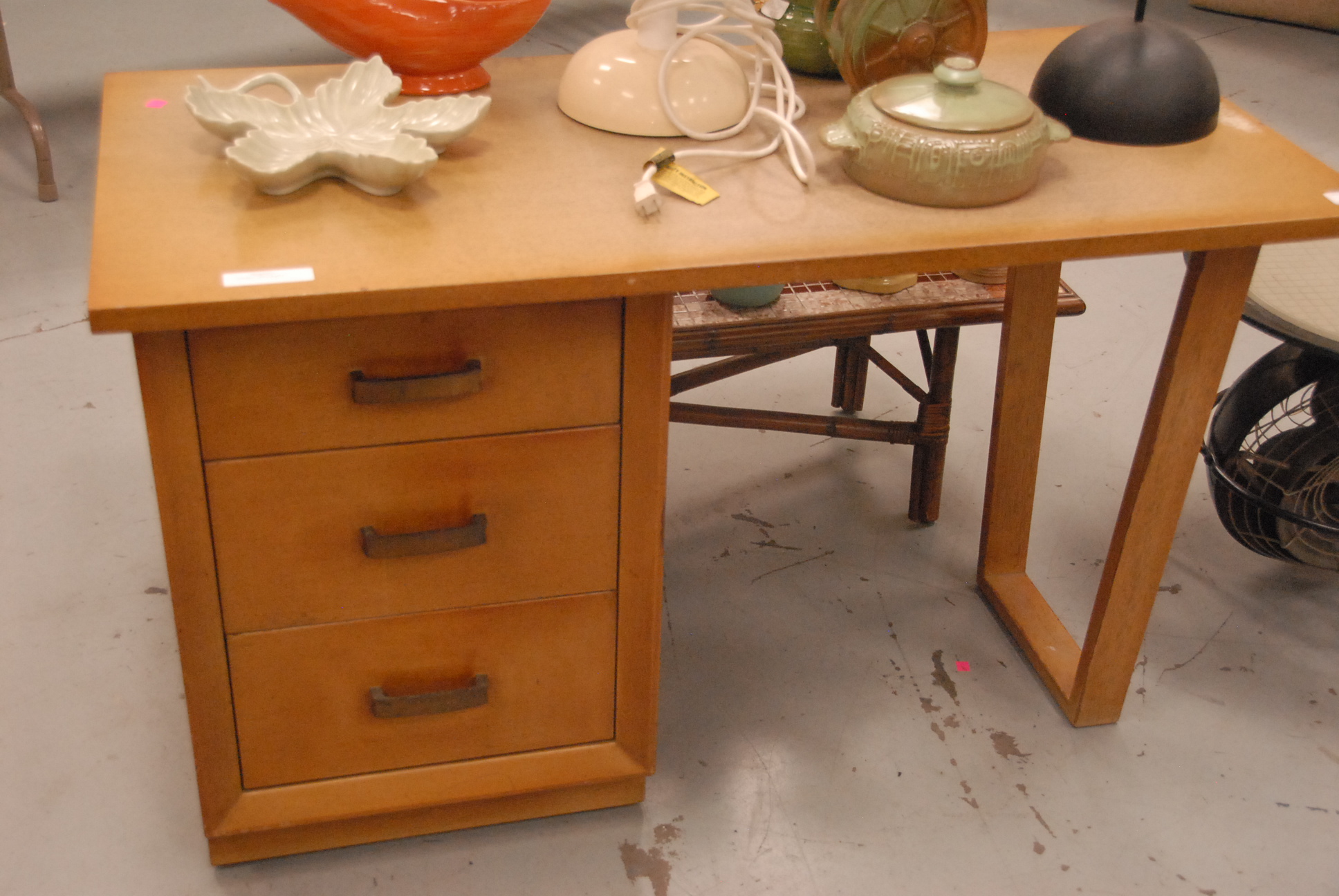 John Stuart cantilevered desk with three drawers, ht. 30in. lg. 48in. dp. 23 1/5in.