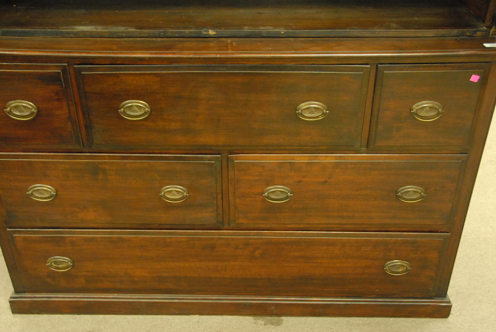 Large mahogany cabinet having two glass doors on top over six drawer base, ht. 87in. wd. 66in.