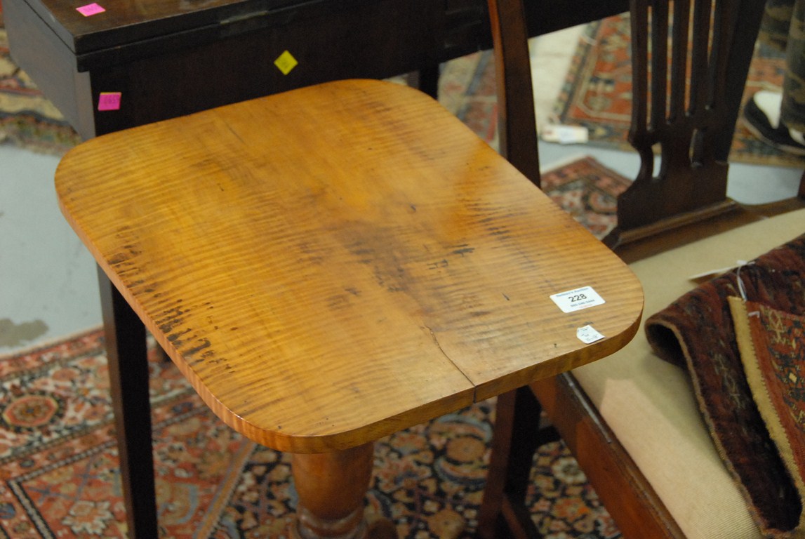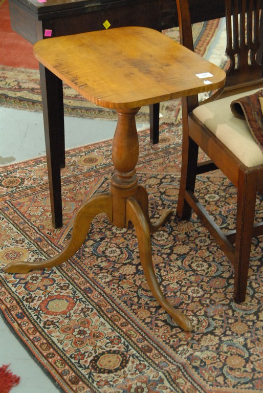 Maple and tiger maple candlestand with rectangular top. ht. 26in. top: 15 x 18