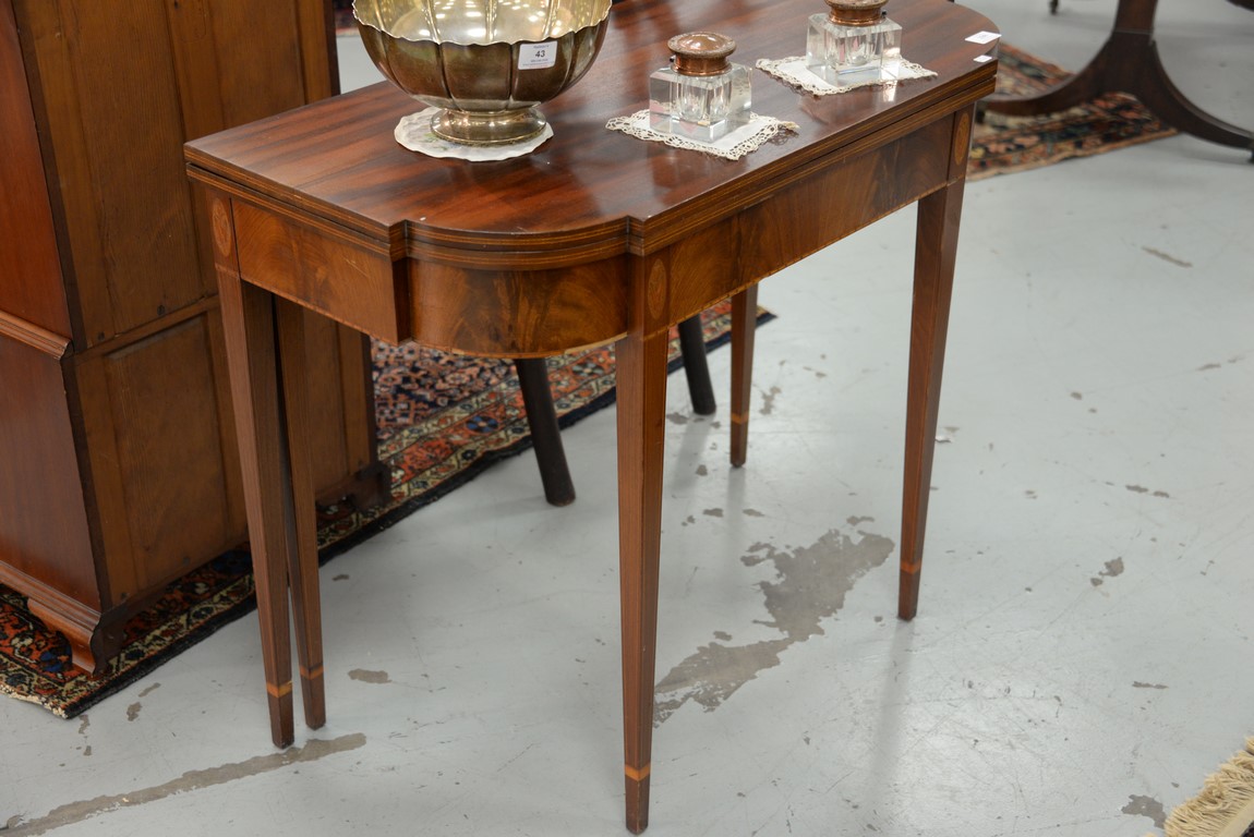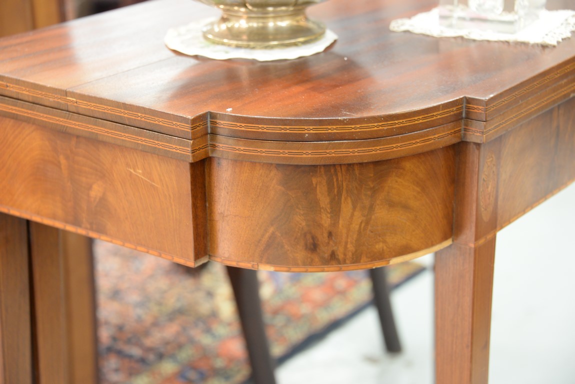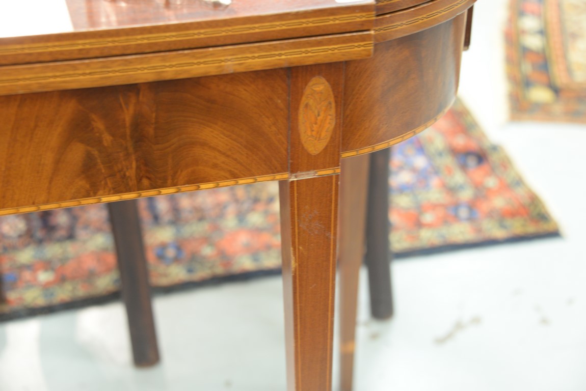 Lot 228: Margolis mahogany Federal style D form game table on square tapered legs, signed Margolis 1936. ht. 30 in. wd. 35 1/2 in.