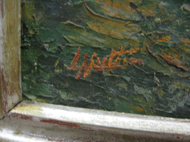 Oil on canvas fall landscape with a church signed lower left L. Northern