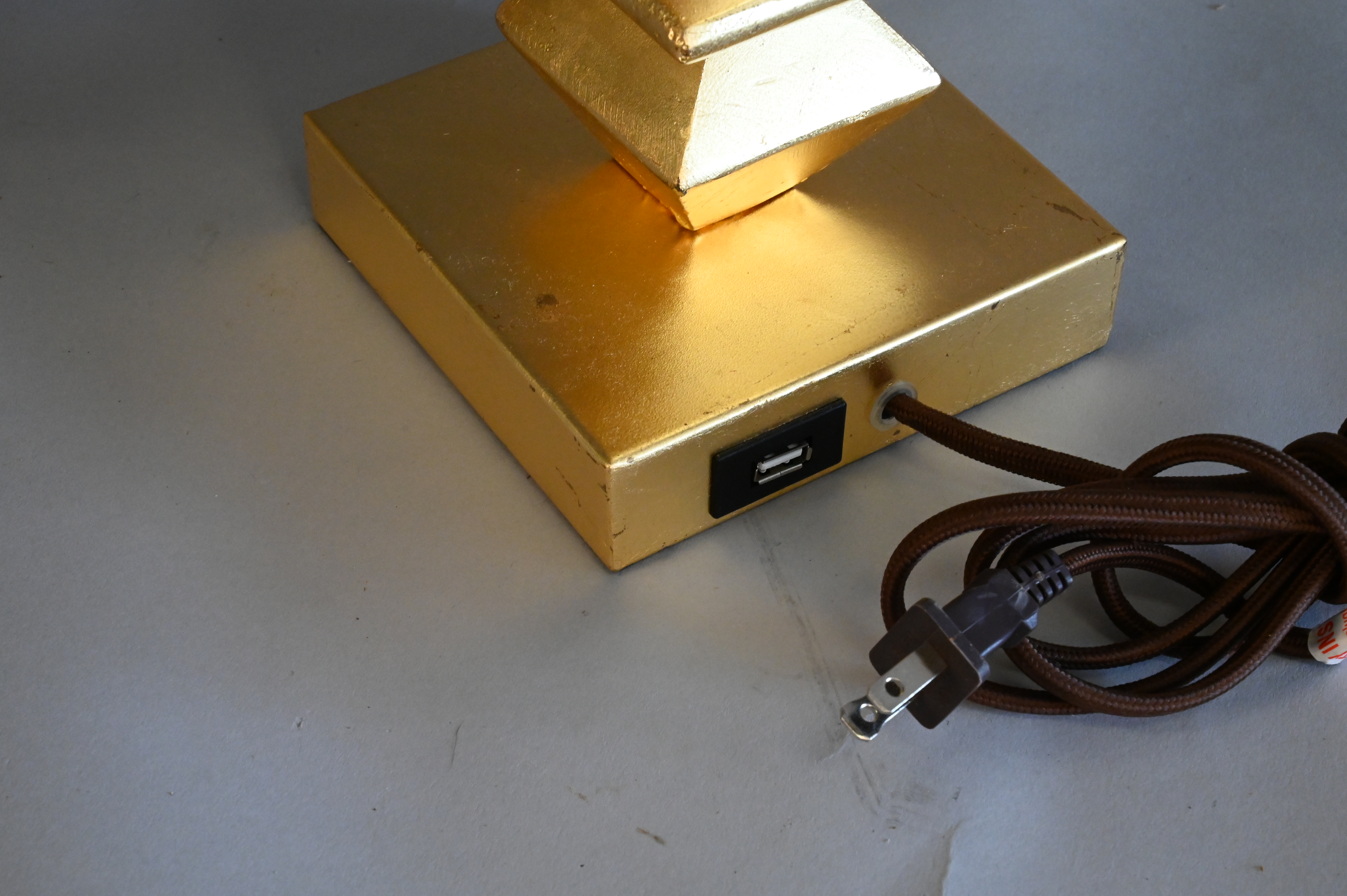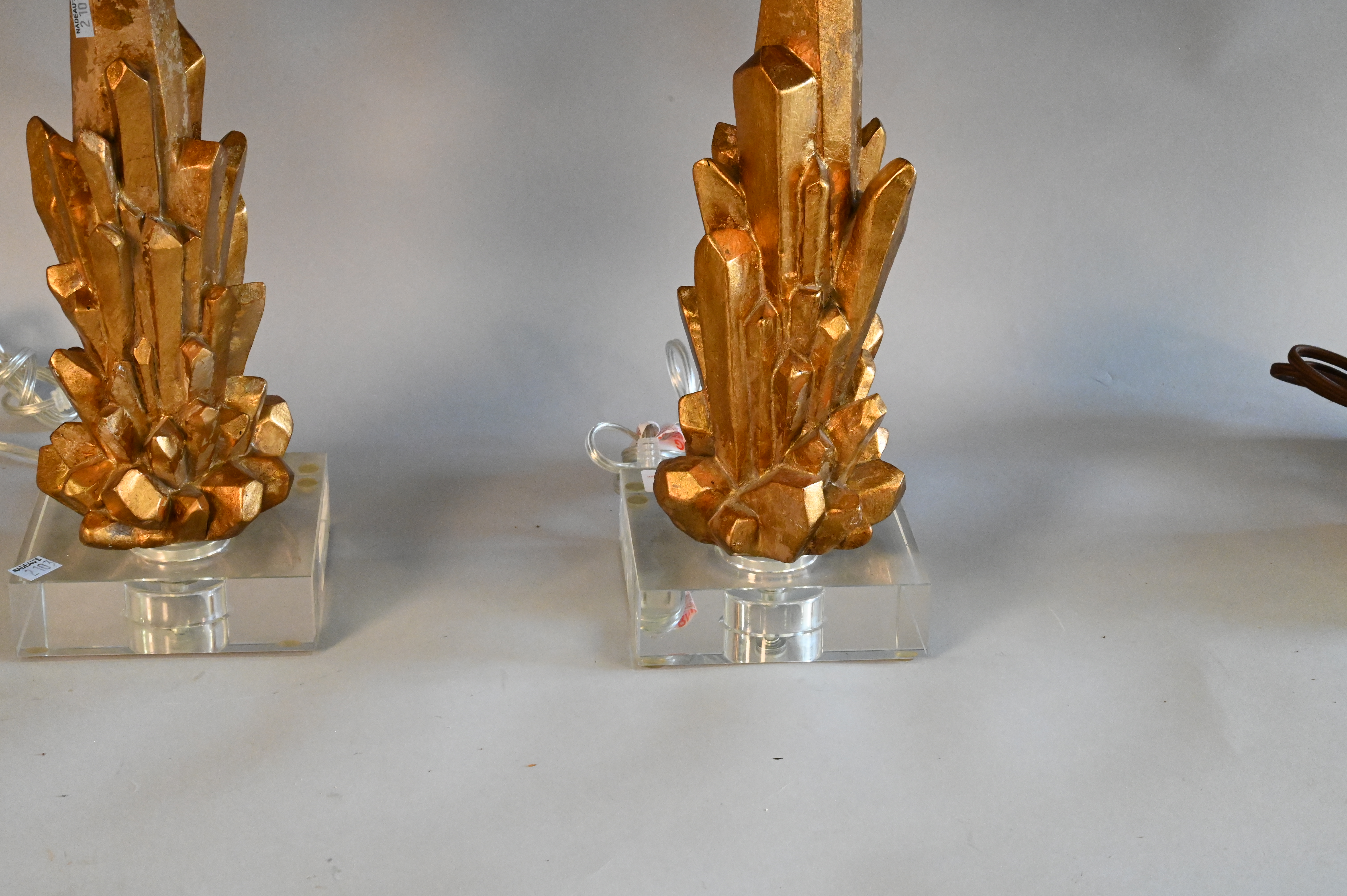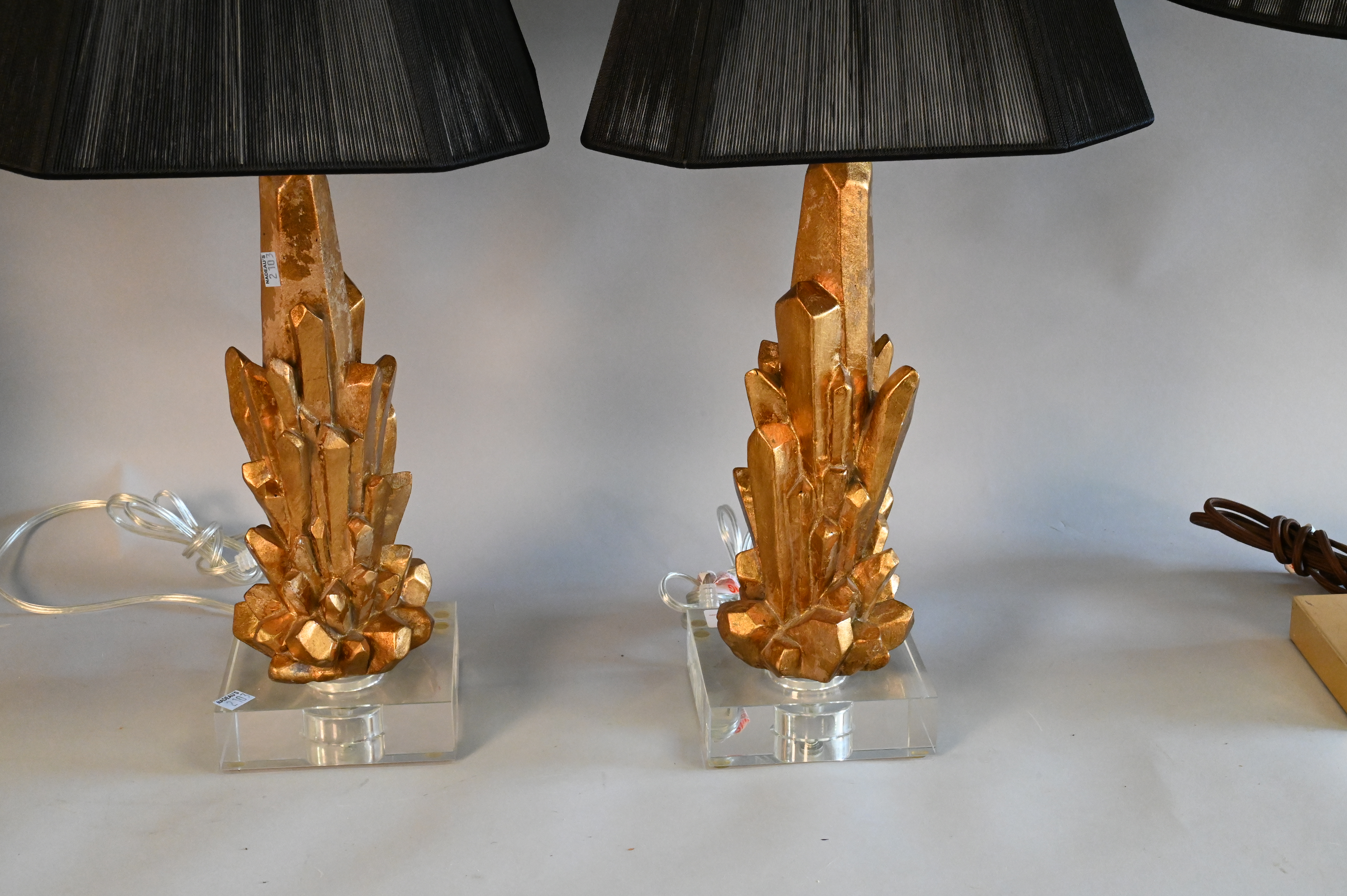 Pair of Contemporary Gilt Rock Crystal Framed Table Lamps, on glass bases, height 26 inches.