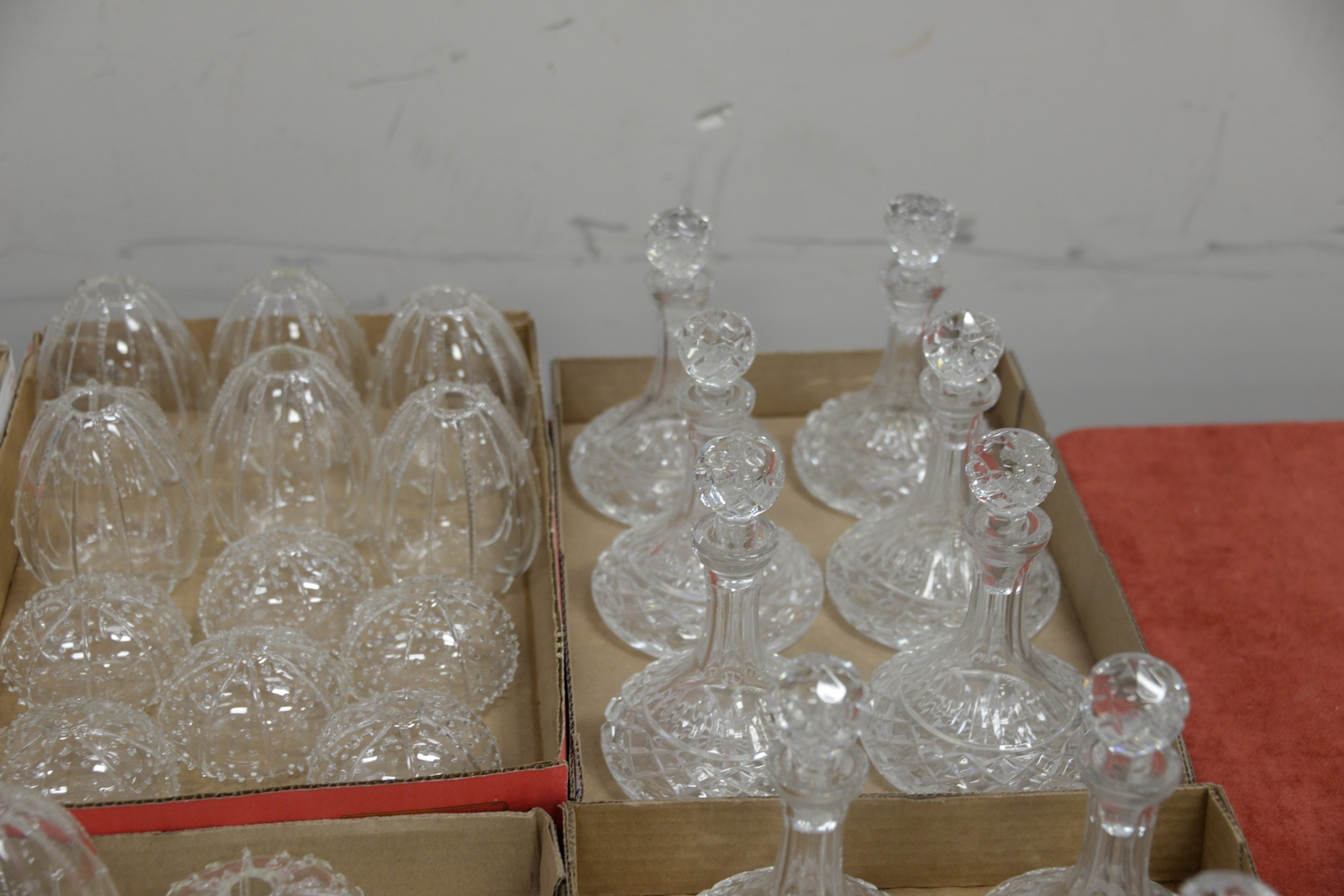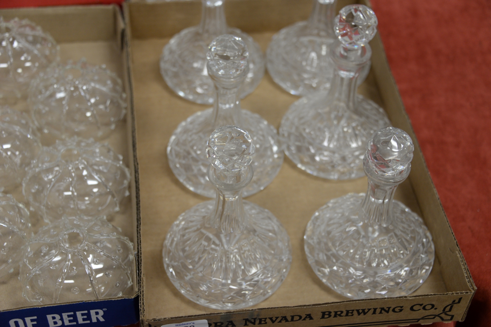 Lot 228: Set of twelve Waterford style crystal decanters with thirty-six crystal sea urchin oil lamps in three sizes 12 of each.