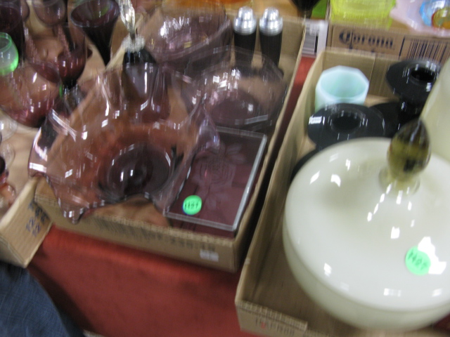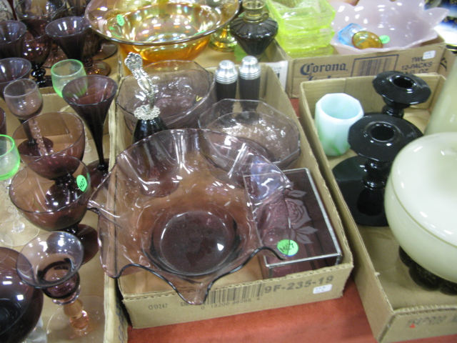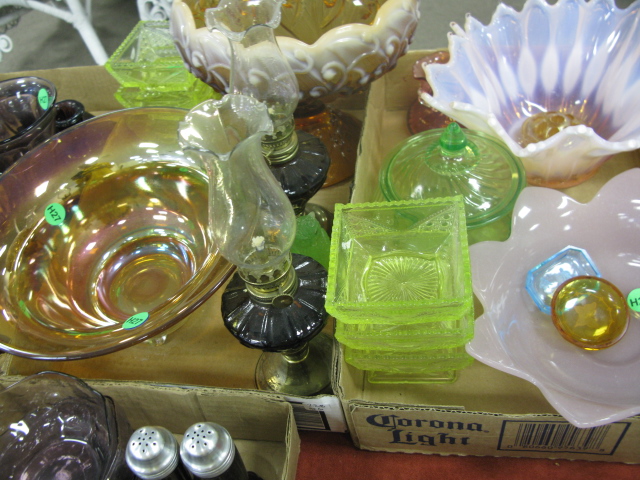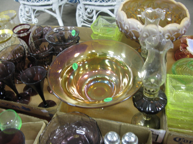 Six box lots of various colored glass amethyst glass, vaseline colored, green, carnival glass, artglass etc.