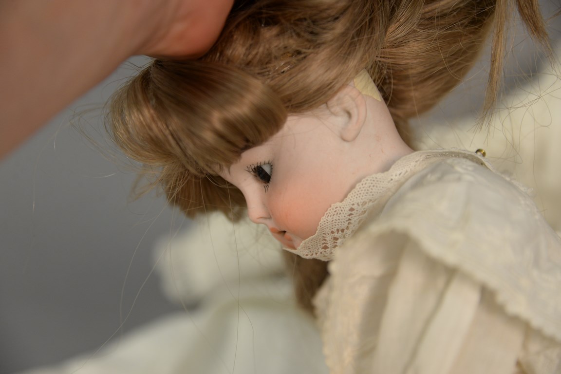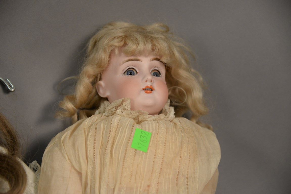 Two bisque head dolls, 19th century. ht. 13 in. & 18 in.