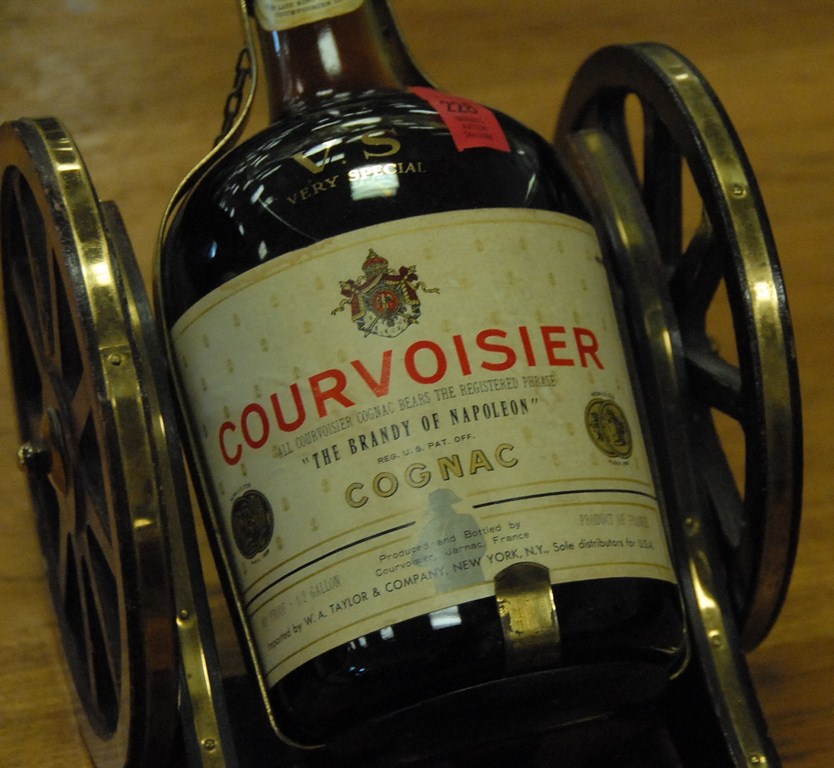 Vintage Courvoisier bottle in form of cannon. Provenance: property from a home in Rockville Center, New York which was decorated by Iris Apfel.